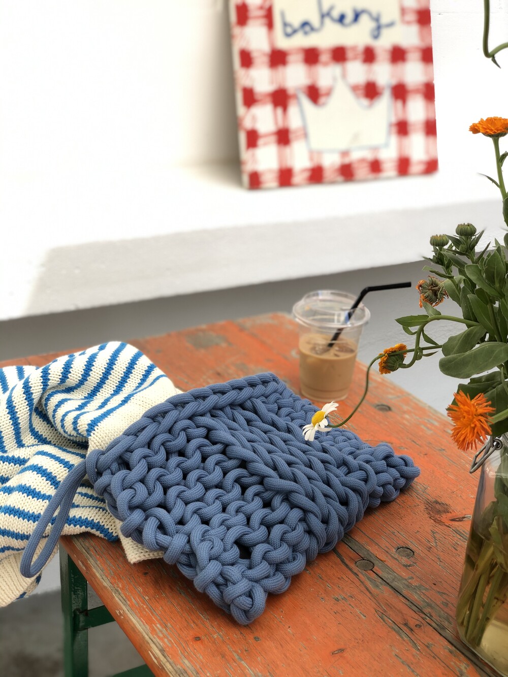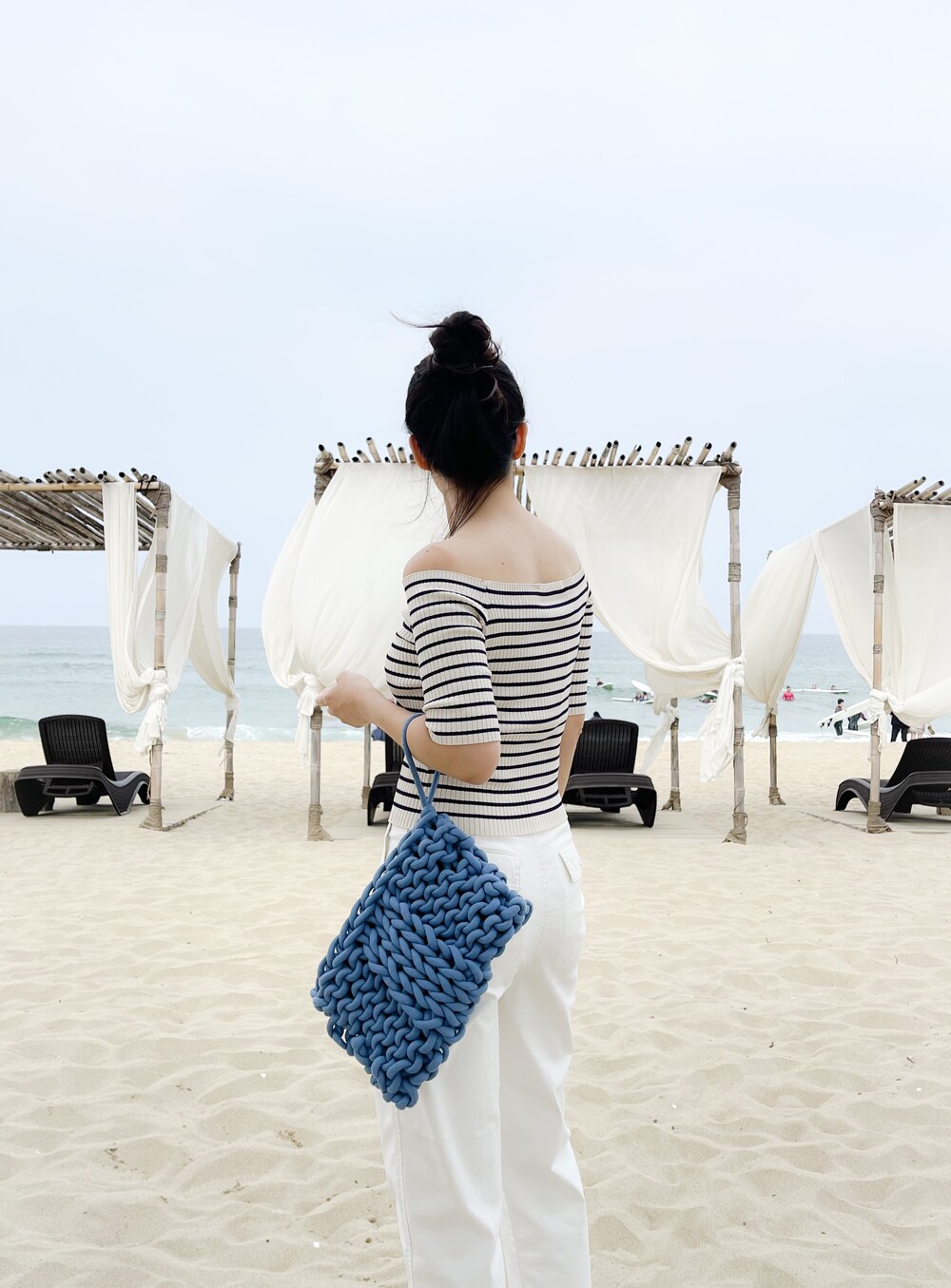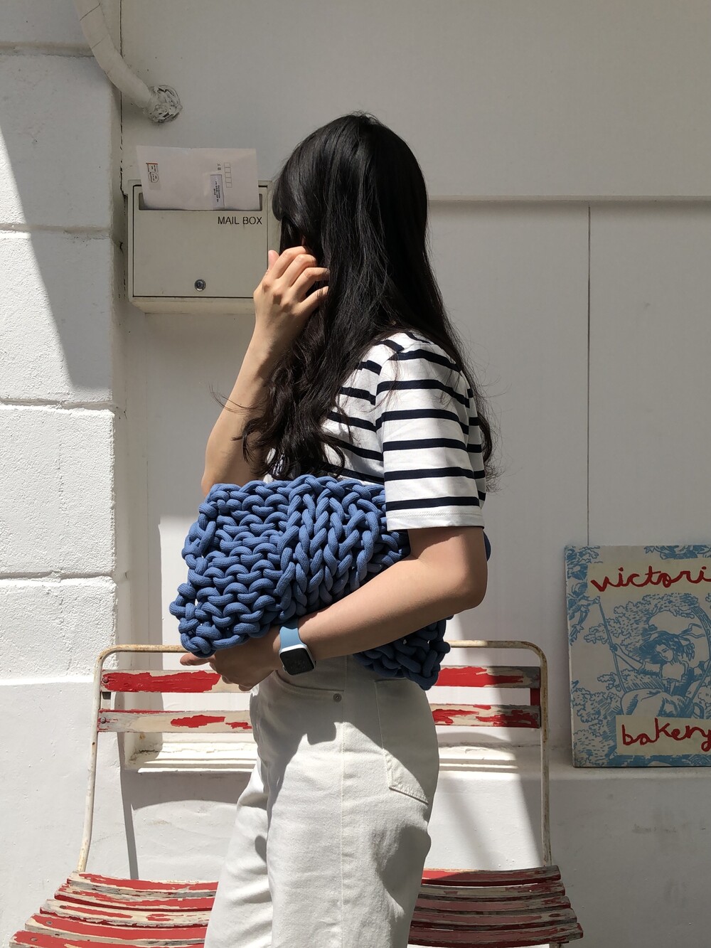 데일리로 착용하기 좋은 Ali-Sara Bag Blue로 은근하게 뿜어지는 매력을 더해보세요.