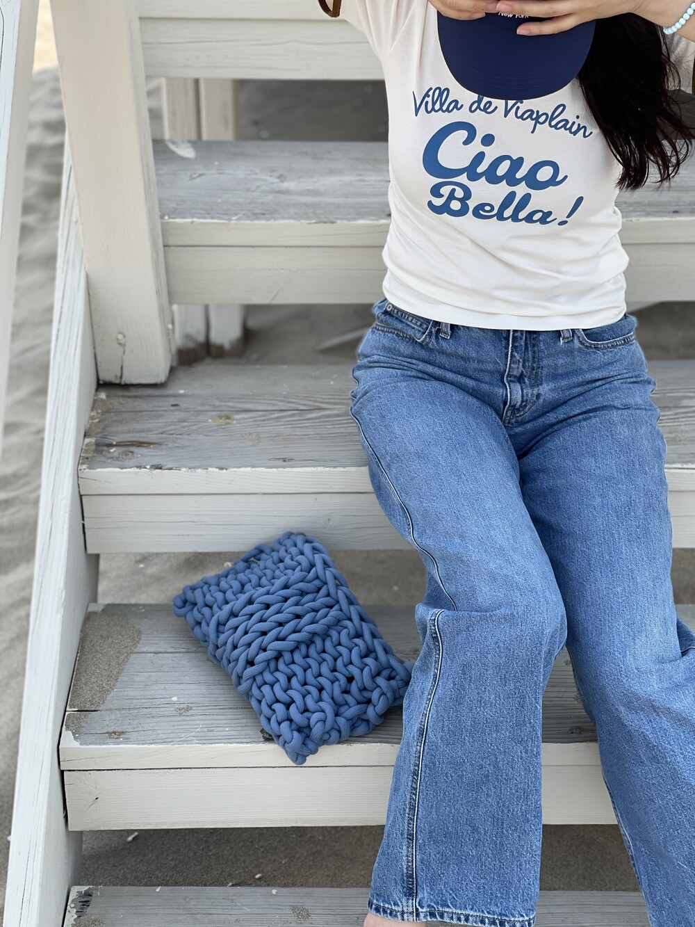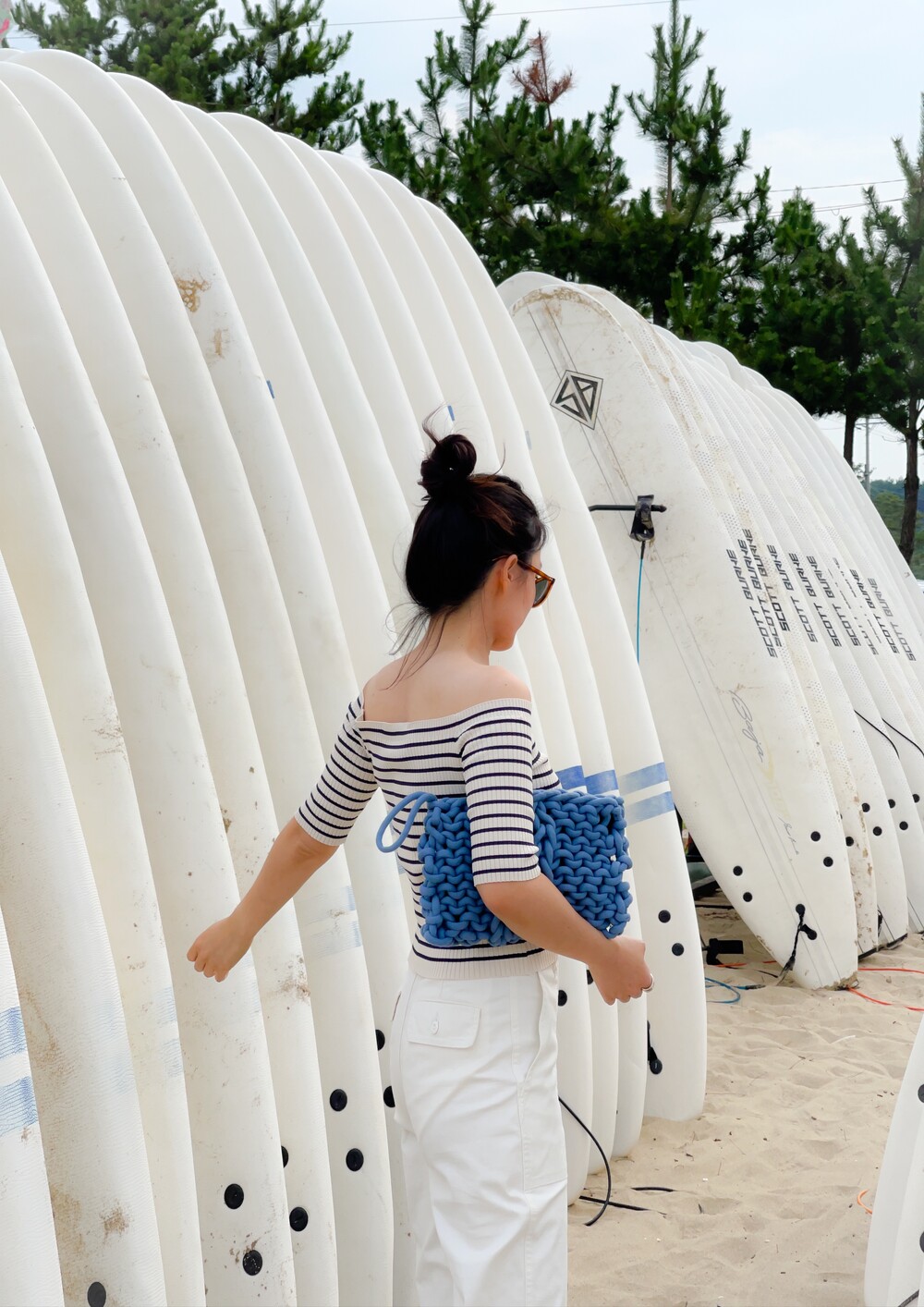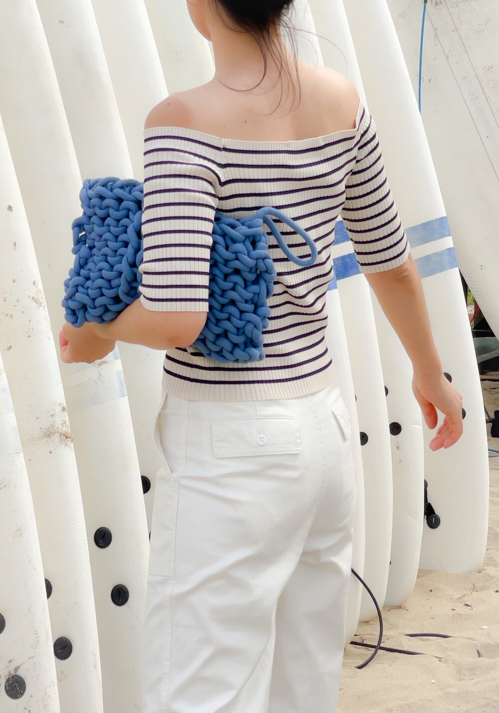 데일리로 착용하기 좋은 Ali-Sara Bag Blue로 은근하게 뿜어지는 매력을 더해보세요.
