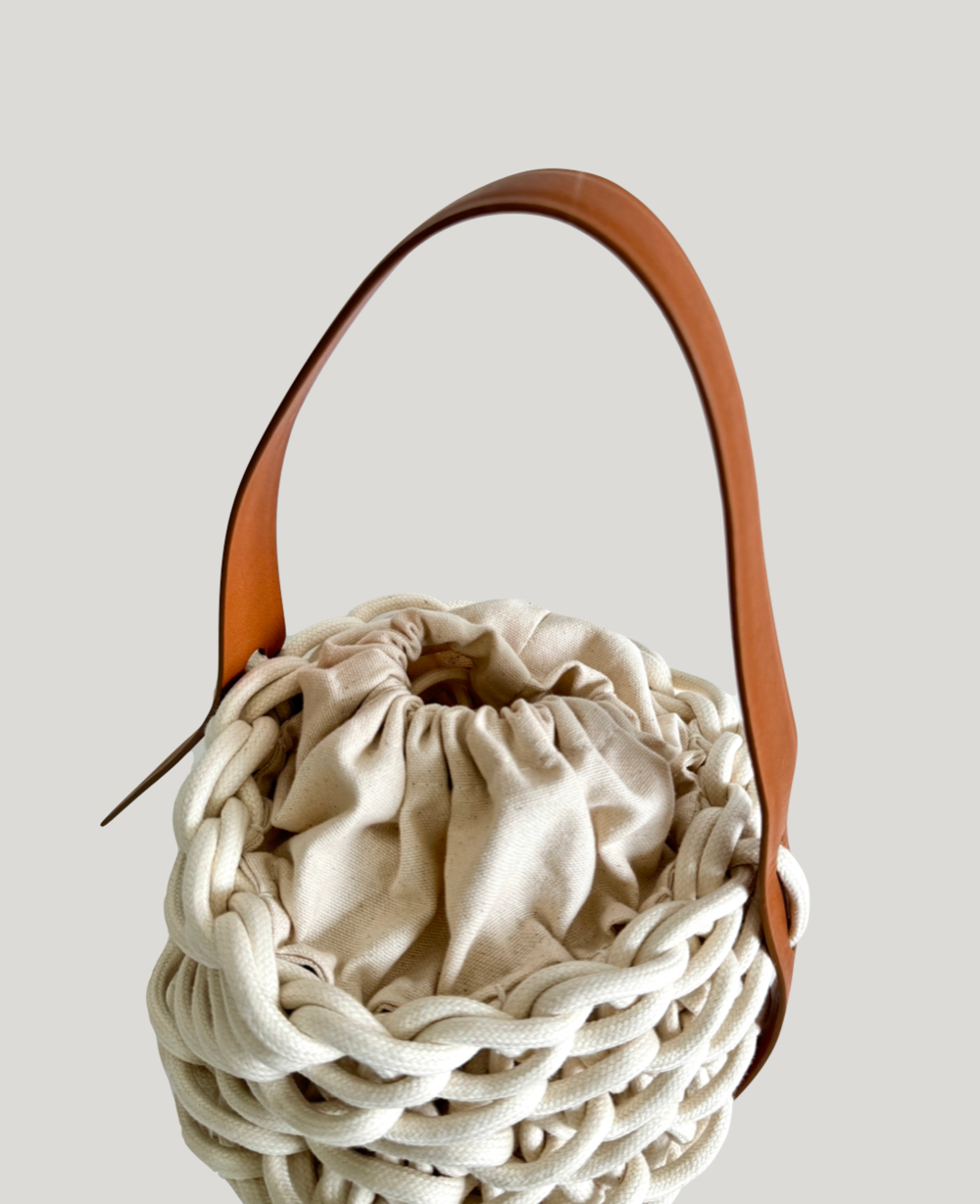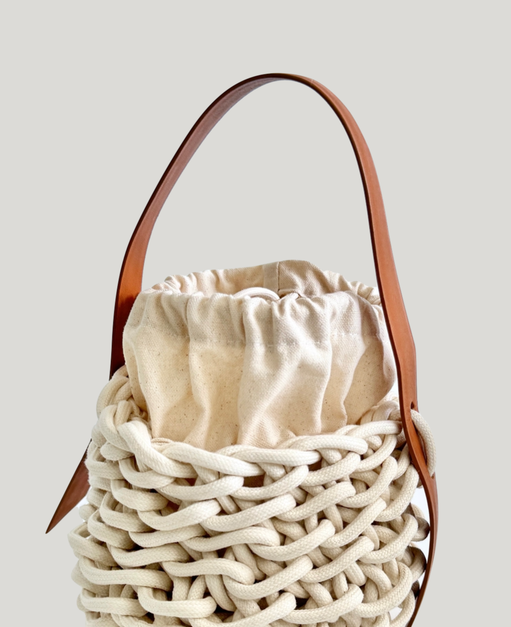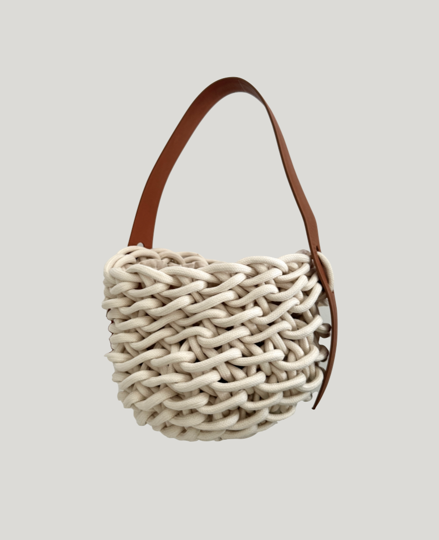 Alienina 알리에니나는 이탈리아 장인들이 한 땀 한 땀 손으로 엮어 소량씩만 제작하는 핸드메이드 가방 브랜드입니다. 고급스러운 코튼 원사, 완성도 높은 위빙 조직 그리고 견고한 내부 사양으로 '네트백계의 에르메스'라고 불리며 유럽, 미국, 일본 등지에서 사랑을 받고 있습니다.