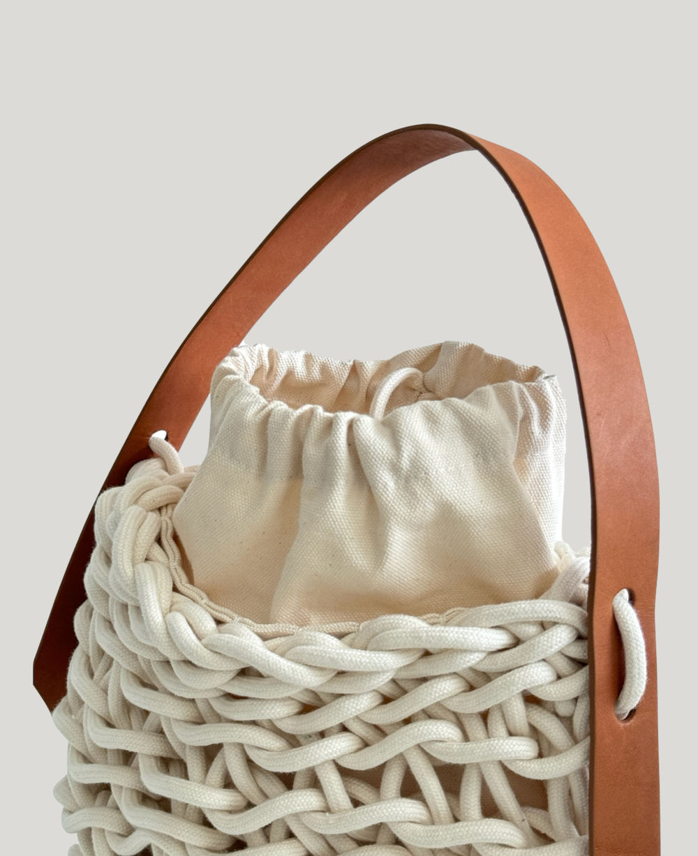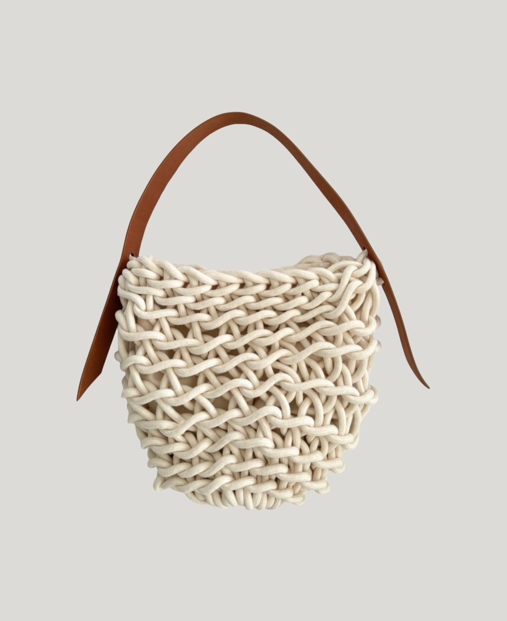 Alienina 알리에니나는 이탈리아 장인들이 한 땀 한 땀 손으로 엮어 소량씩만 제작하는 핸드메이드 가방 브랜드입니다. 고급스러운 코튼 원사, 완성도 높은 위빙 조직 그리고 견고한 내부 사양으로 '네트백계의 에르메스'라고 불리며 유럽, 미국, 일본 등지에서 사랑을 받고 있습니다.