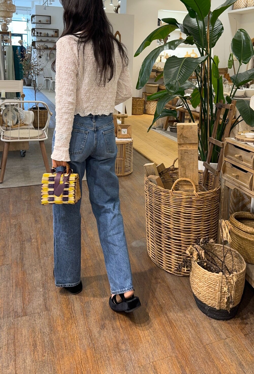 천연염색된 갈대를 엮어 제작하는 Portugal Reed Bag 포르투갈 전통 리드백은 100% 핸드메이드, 100% 유기농 갈대만을 사용하여 만들어집니다. 선명한 컬러감과 내추럴 소재의 조합이 매력적인 써머백으로 비교적 넉넉한 수납공간, 베지터블 태닝 레더와 마그네틱 클로저 그리고 바닥면 메탈풋의 실용적 디테일까지 겸비한 제품입니다.