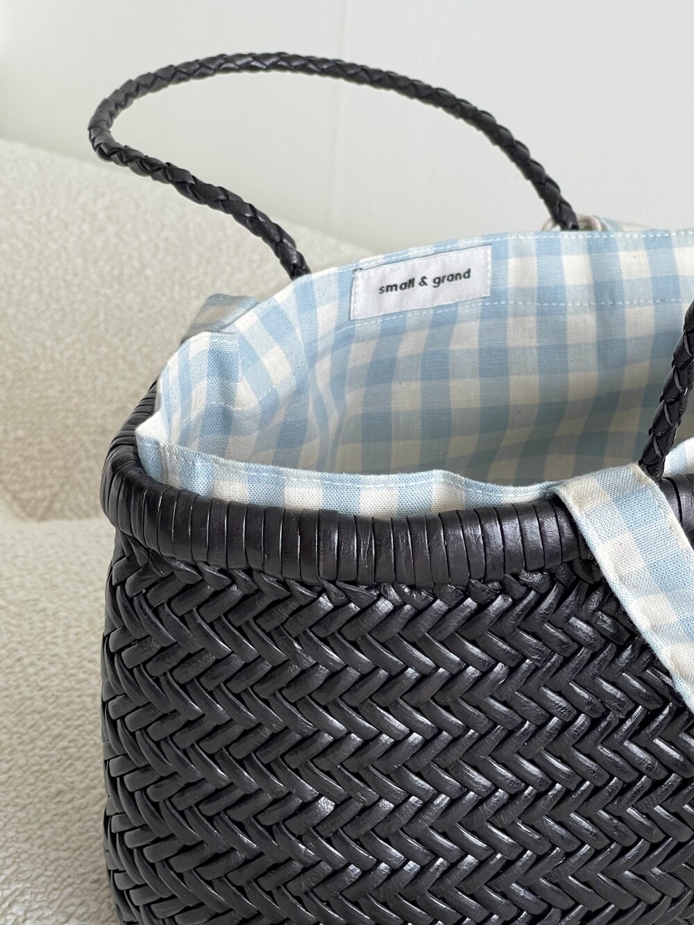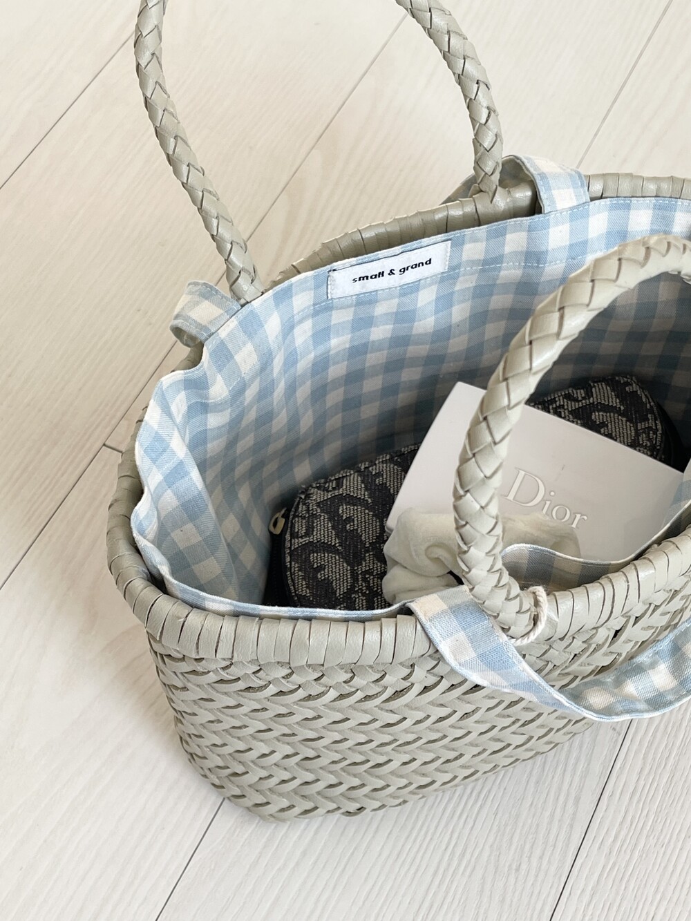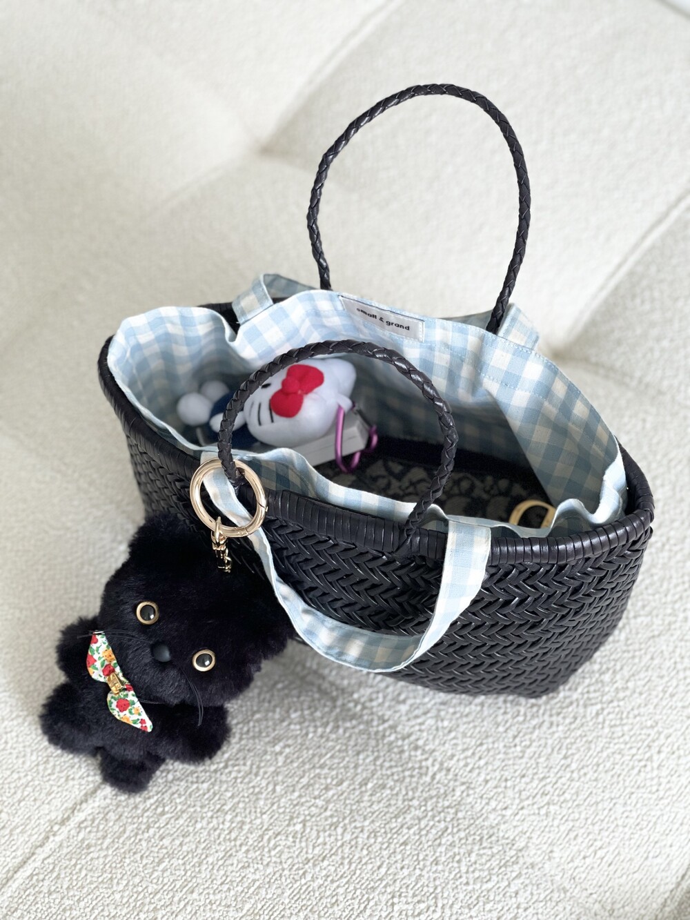 Dragon Diffusion 드래곤디퓨전 백을 위해 스몰앤그랜드가 직접 제작한 NEW Dragon Inner Bag Sky Blue_Mini 뉴 드래곤 이너백 스카이 블루 미니를 소개합니다. 가죽스트랩을 꼬아 만든 드래곤백은 가방안쪽면에 많은 가죽먼지가 발생하여 소지품에 잘 묻어나는데, 이너백을 사용하면 이러한 가죽먼지를 커버할 수 있고 가방의 쳐짐 현상 그리고 소지품이 빠지는 것도 막아주어 에센셜 아이템으로 추천 드려요.