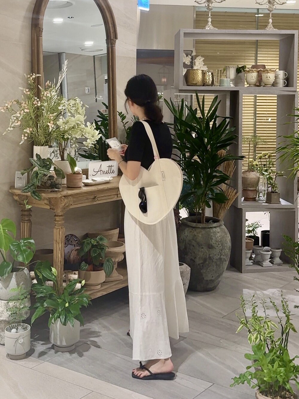여유로운 길이의 숄더 스트랩과 실용적인 아웃 포켓, 넉넉한 수납 공간, 그리고 가벼운 무게감까지 일상에서 편안하게 즐기기 제격입니다. 섬세한 패턴과 정교한 봉제로 완성된 균형 잡힌 하트 디자인이 시선을 사로잡아, 어떤 OOTD에도 포인트 아이템으로 딱 맞는 특별함을 선사합니다.