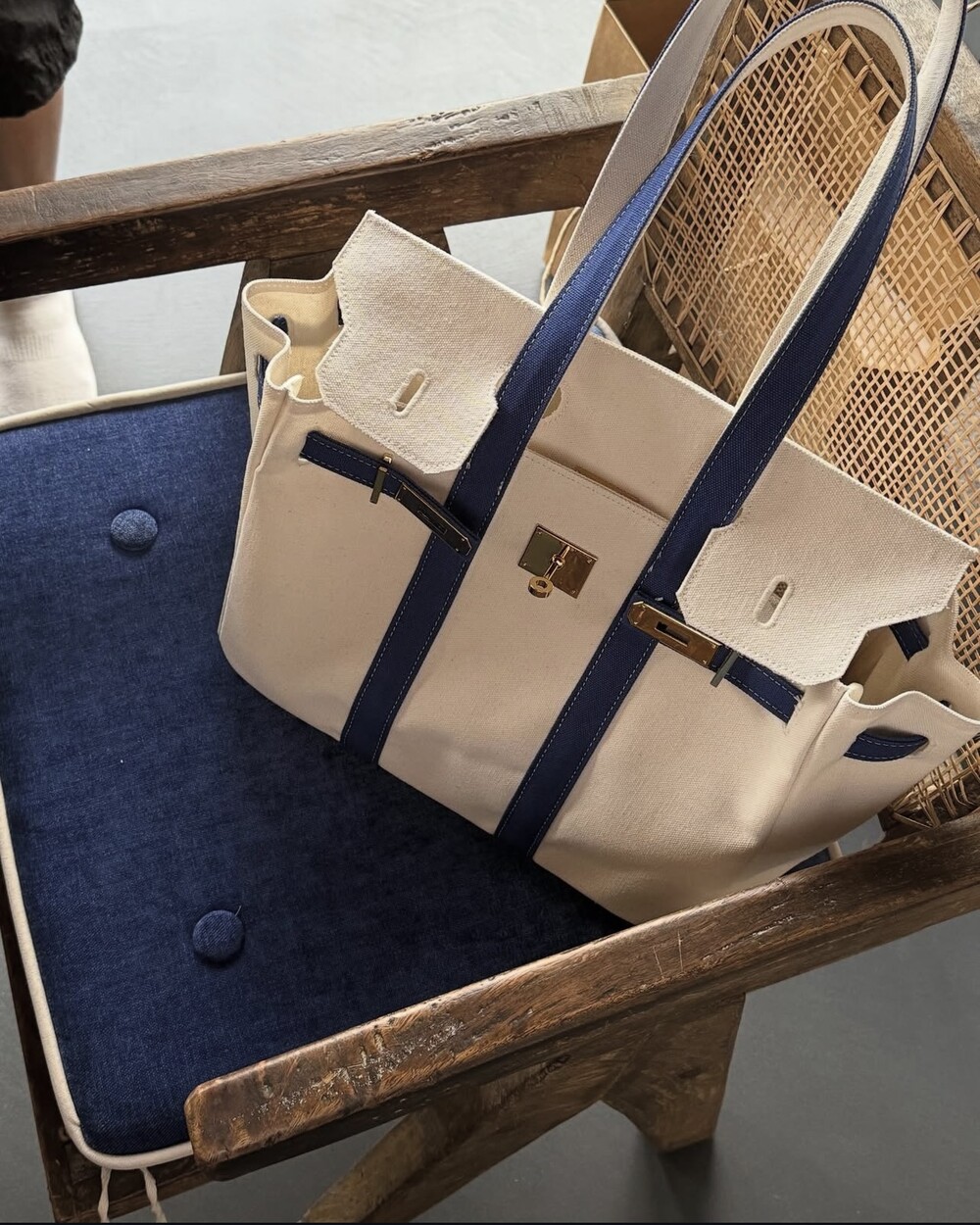 • 견고한 캔버스 소재와 18K 골드 도금 장식이 어우러진 심플하고 우아한 디자인
