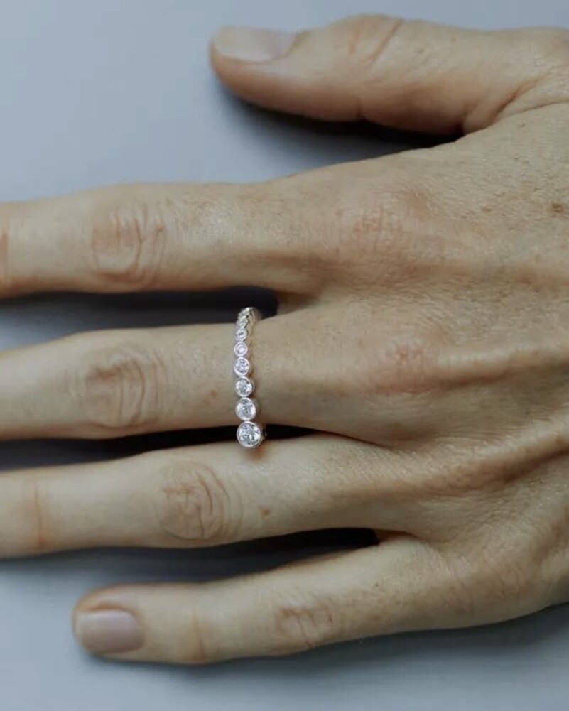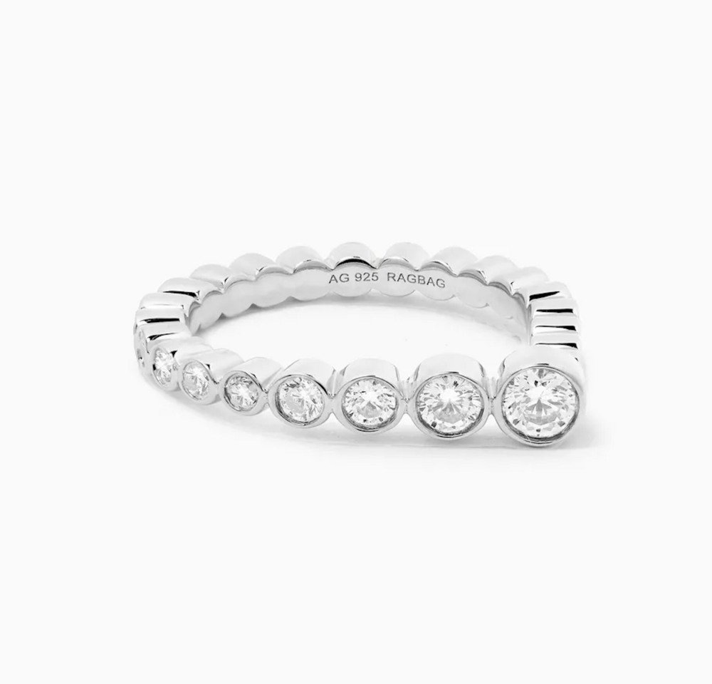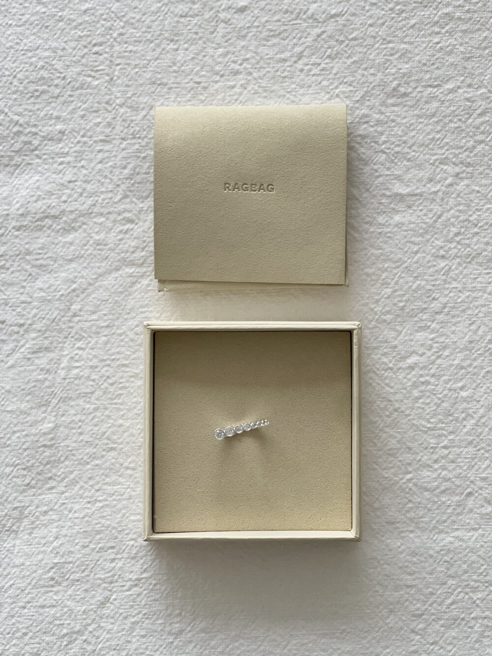 스몰앤그랜드에서 국내 첫 런칭한 RAGBAG 랙백의 925 실버스털링 컬렉션 중 베스트 아이템인 Odette Ring 오데트 링을 소개합니다. 물방울 모양의 925 실버스털링 베이스에 다이아몬드 주얼리에 사용되는 58면체 다각형 세팅 방식인 크리스탈 화이트 브릴리언트 컷으로 더욱 반짝이는 큐빅 지르코니아 스톤이 배열되어 세련된 럭셔리 무드가 돋보이는 반지입니다. 클래식에 현대적인 반전을 얹은 세련된 북유럽 감성으로 당신의 스타일을 완성시켜 줍니다.