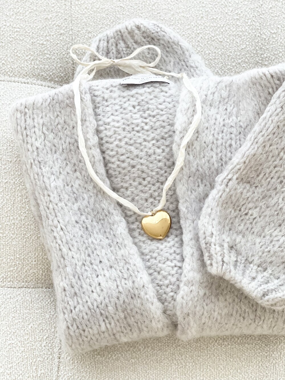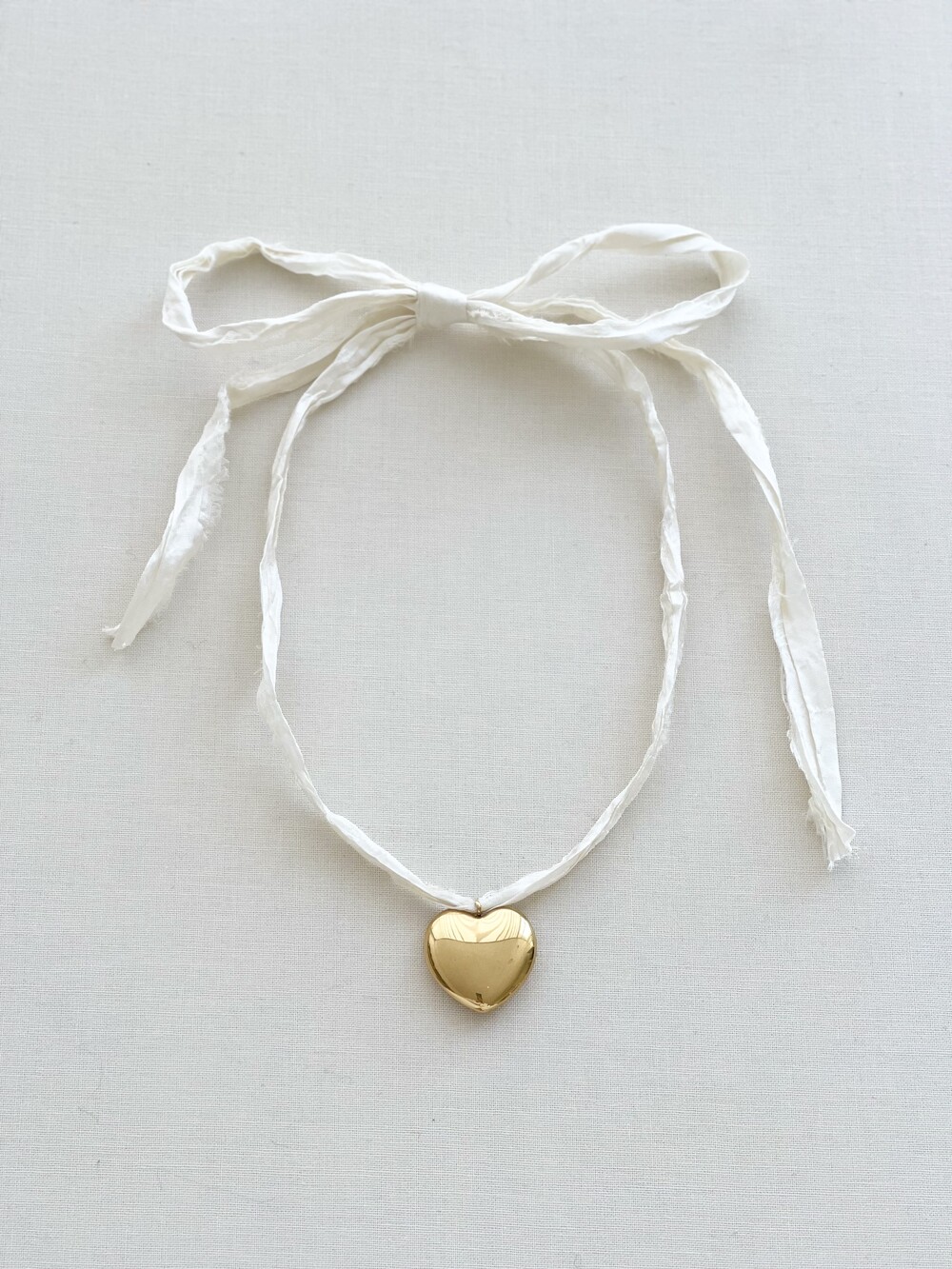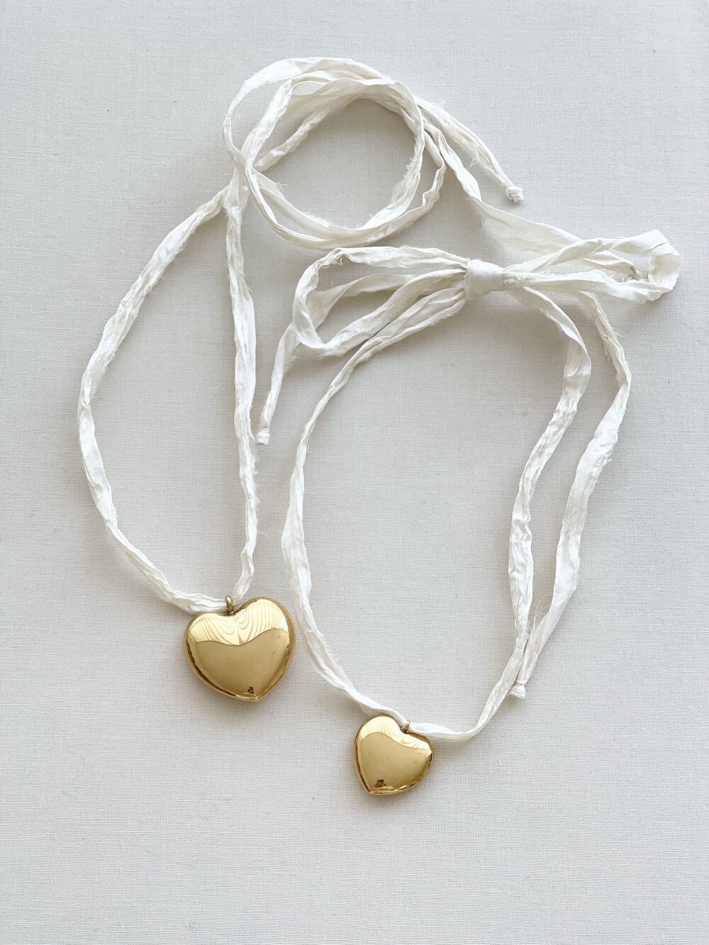 은은하면서도 고급스러운 골드와 아이보리 컬러가 우아하게 어우러지는 Heart Silk Necklace 하트 실크 네크리스를 소개합니다. 포인트 스타일링이 가능한 하트 실크 네크리스는 취향과 OOTD에 따라 기장을 다양하게 조절하여 스타일링하세요. 합리적인 가격대의 하트 실크 네크리스를 스몰과 라지 두가지 사이즈로 선보입니다.