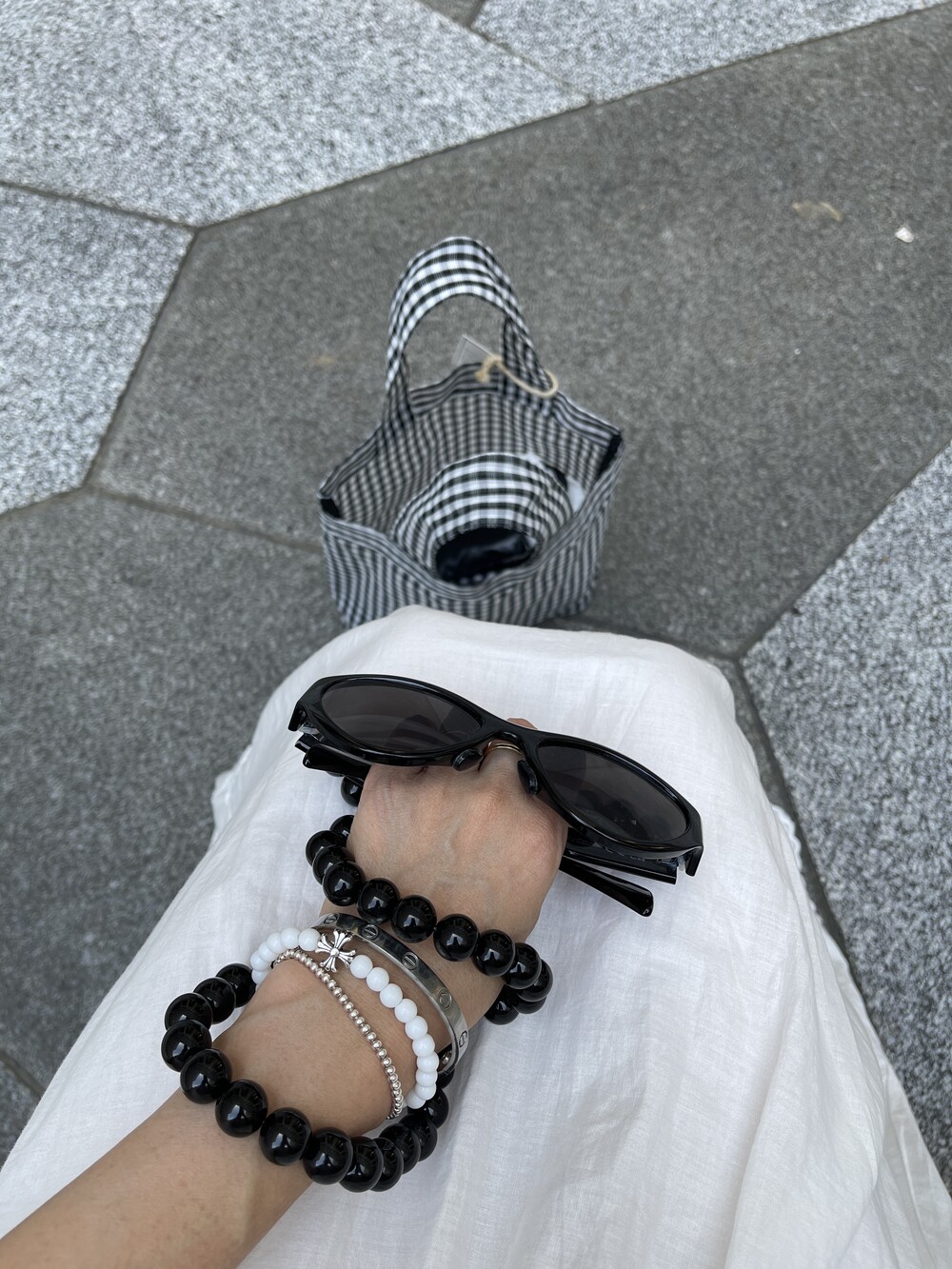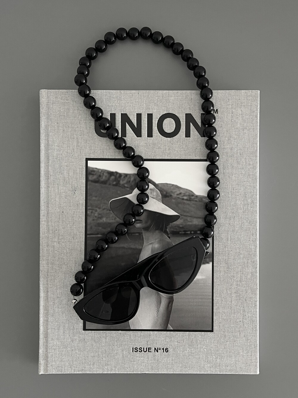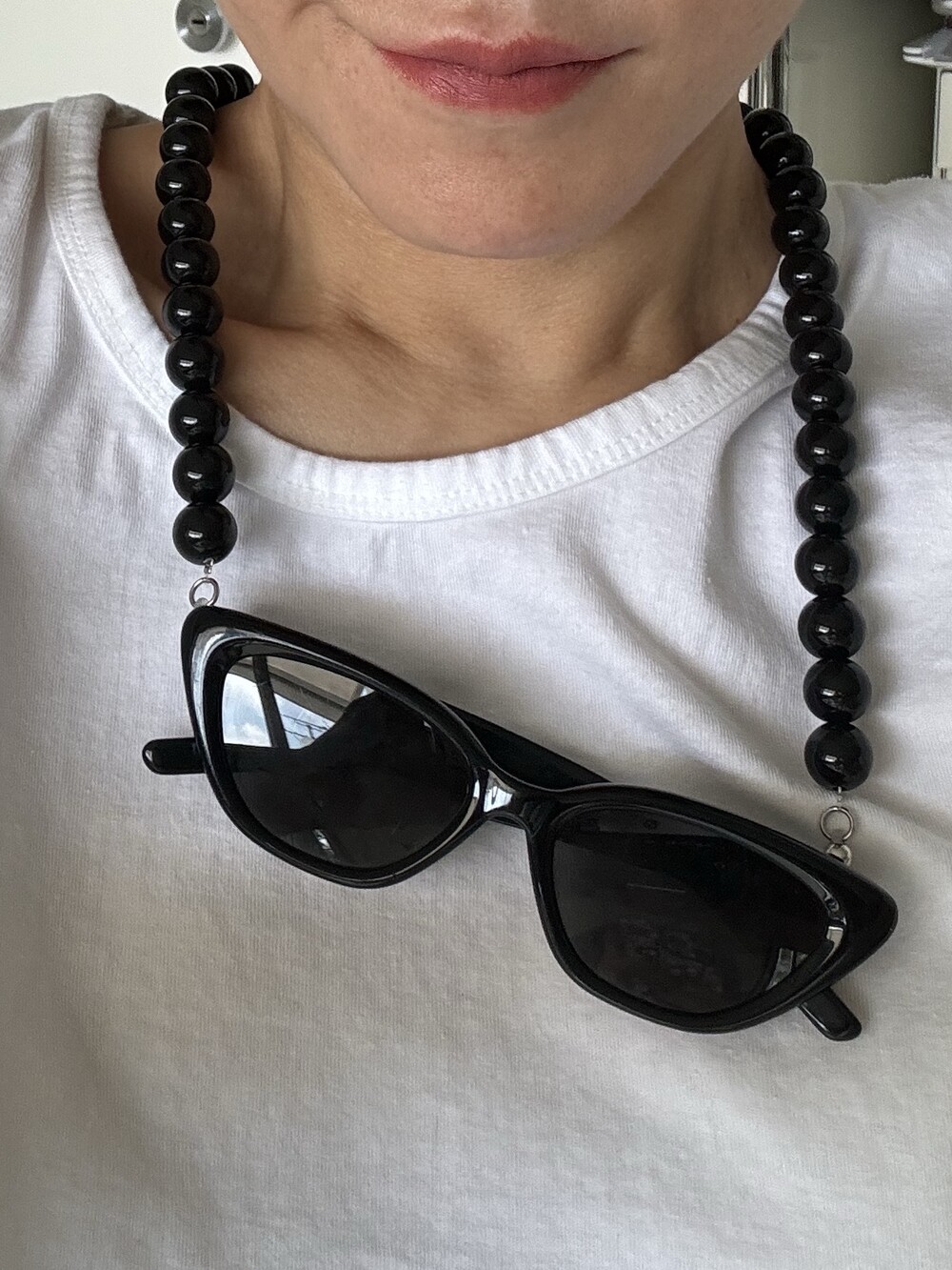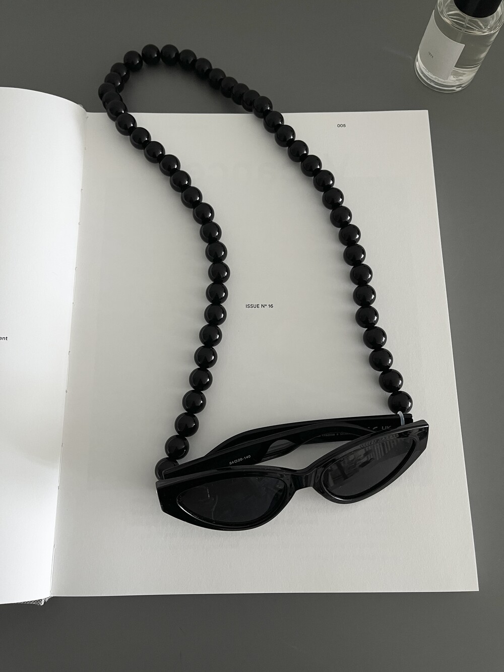 시크한 블랙 컬러볼로 엮여진 Sunglass String 선글라스 스트링을 소개합니다. 14mm 블랙볼로 엮은 볼드함과 적당한 길이감으로 가벼운 썸머아웃핏을 한층 업그레이드 시켜줄 스몰앤그랜드 자체제작 상품입니다. 선글라스 또는 안경에 끼우는 실리콘 디테일로 마무리되어 편리하게 착용하실 수 있습니다.