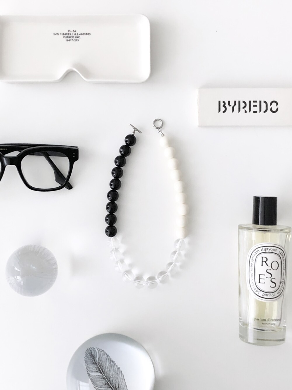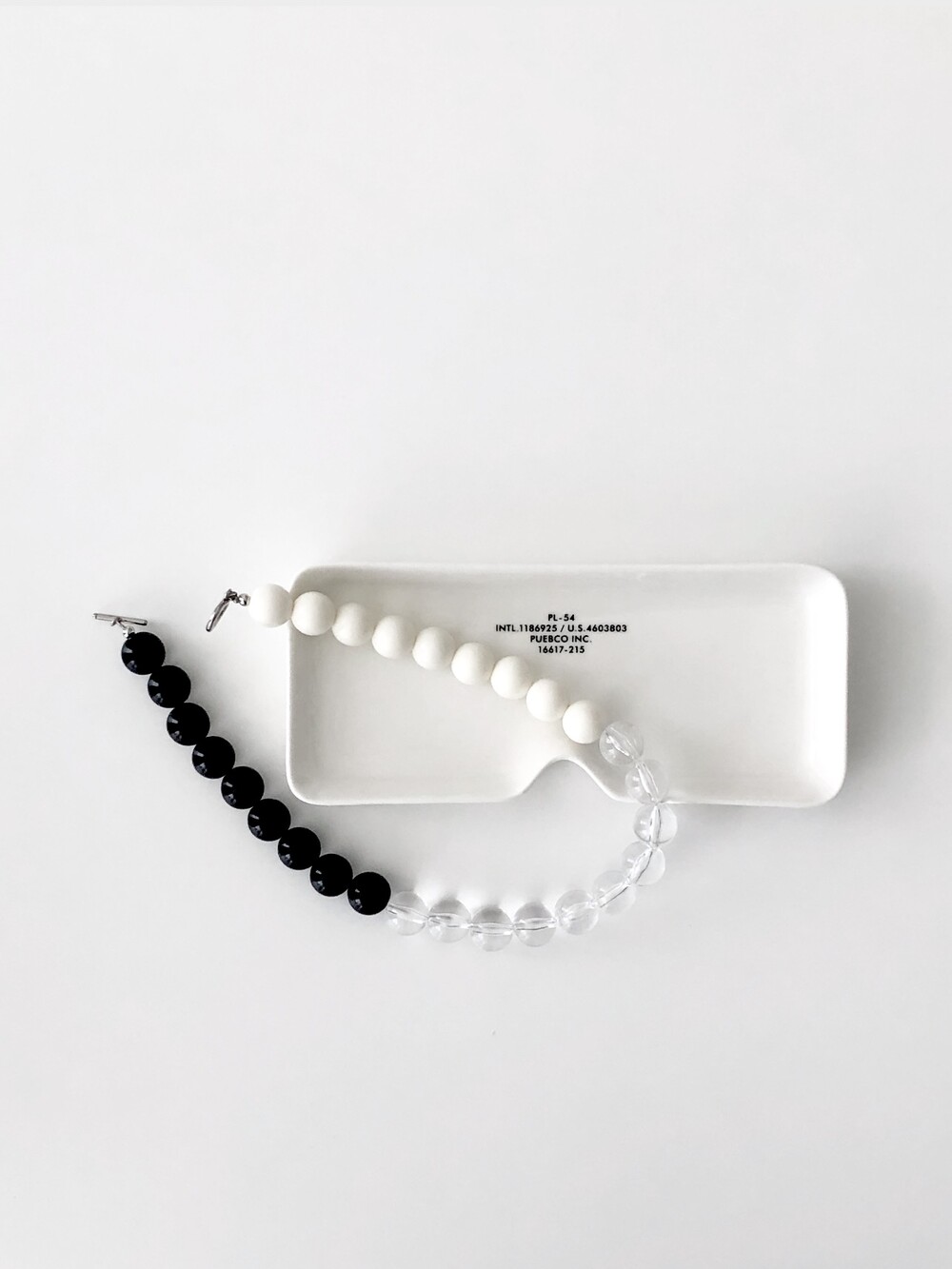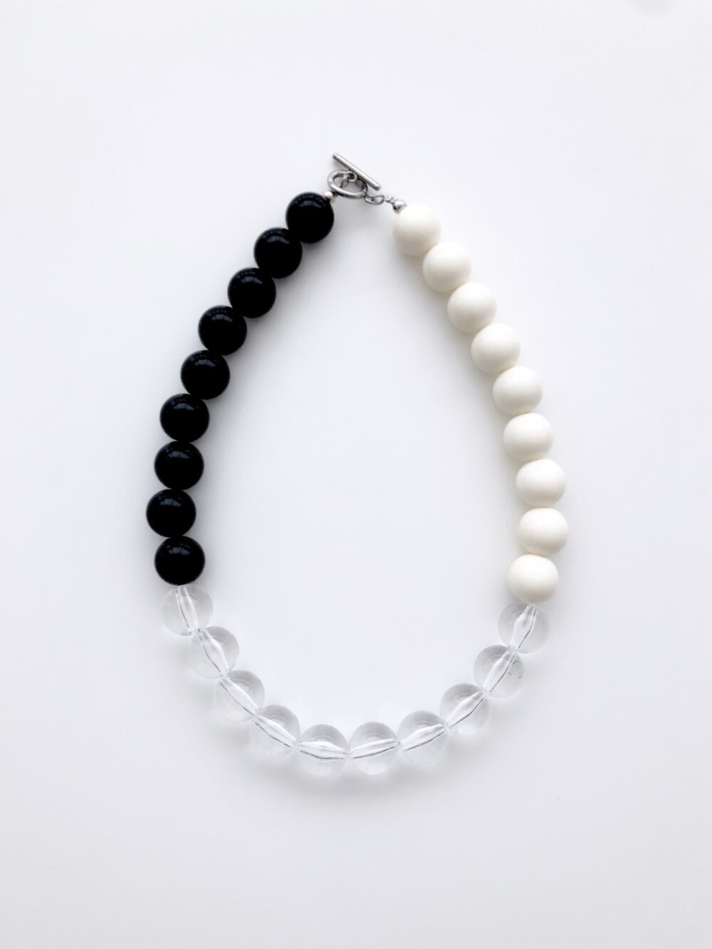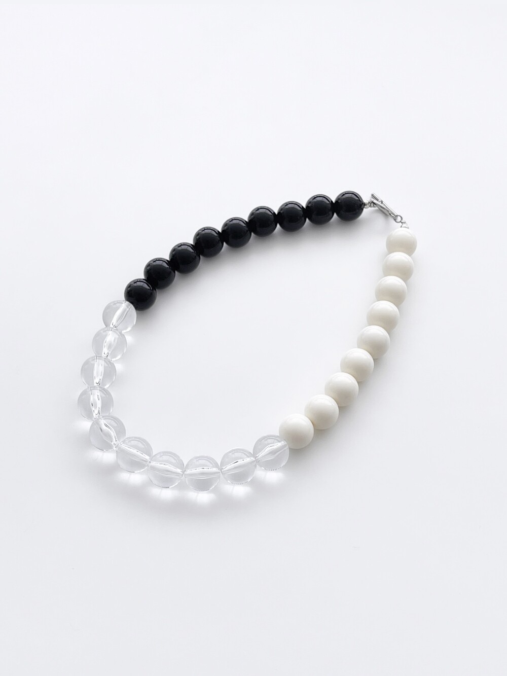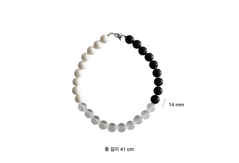 모던한 무드가 돋보이는 Black, White, Clear 14mm 아크릴볼 믹스드 네크리스로 감각적인 스타일링을 완성해보세요!