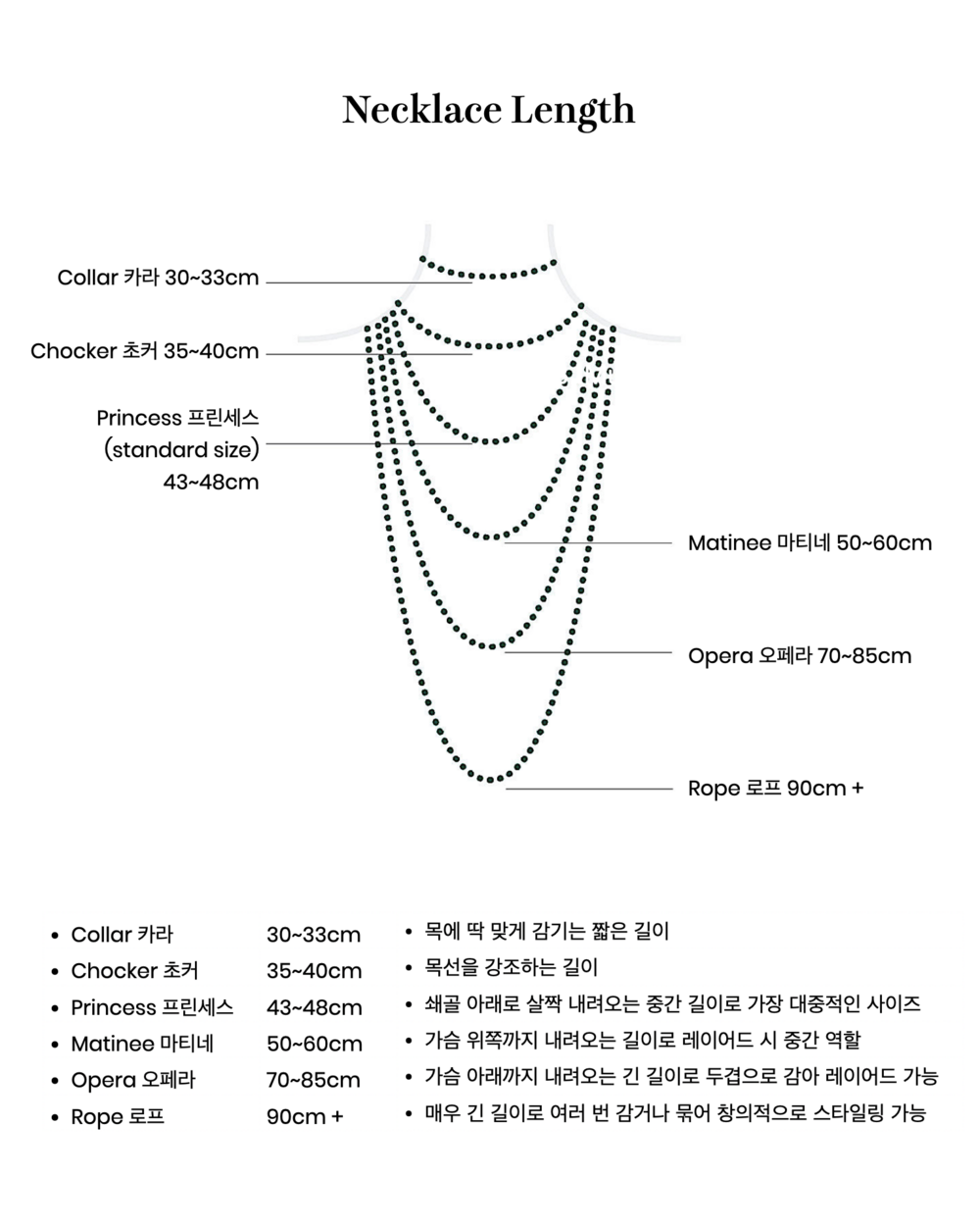 네크리스 길이를 기준으로 카테고리를 나누면 일반적으로 다음과 같습니다.