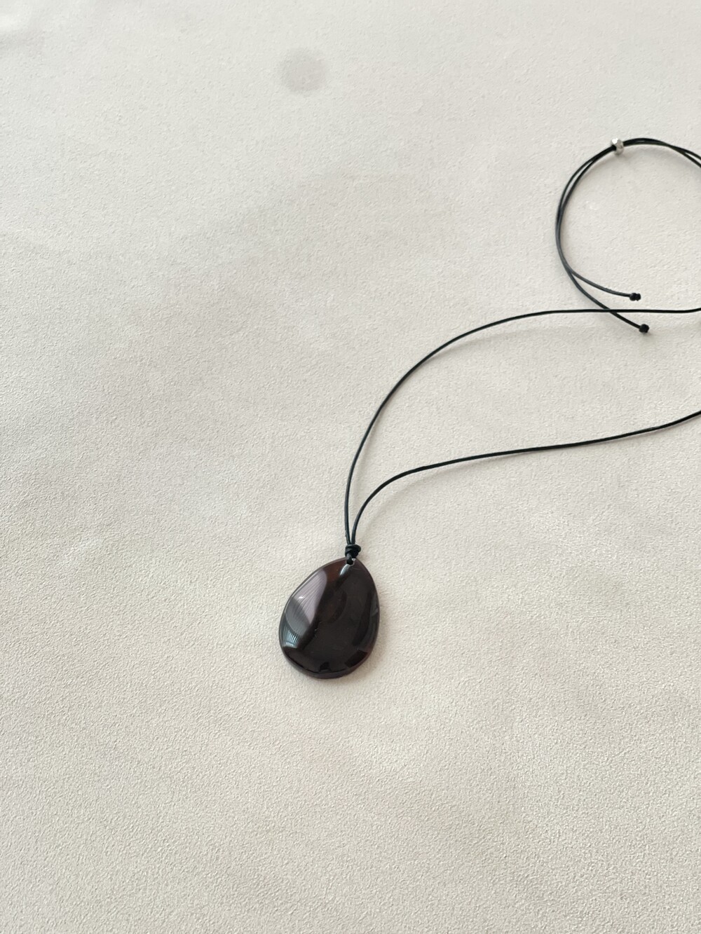 [S&G] Tear-Drop Agate Pendant Necklace 티어드롭 아게이트 펜던트 네크리스는 자연 그대로의 컬러와 무늬로 유니크한 매력을 지닌 네크리스 입니다. 길이 조절이 가능한 블랙 와스 코드를 사용하여, 다양한 아웃핏에 고급스러움을 더해줍니다.