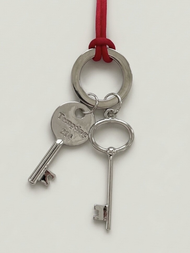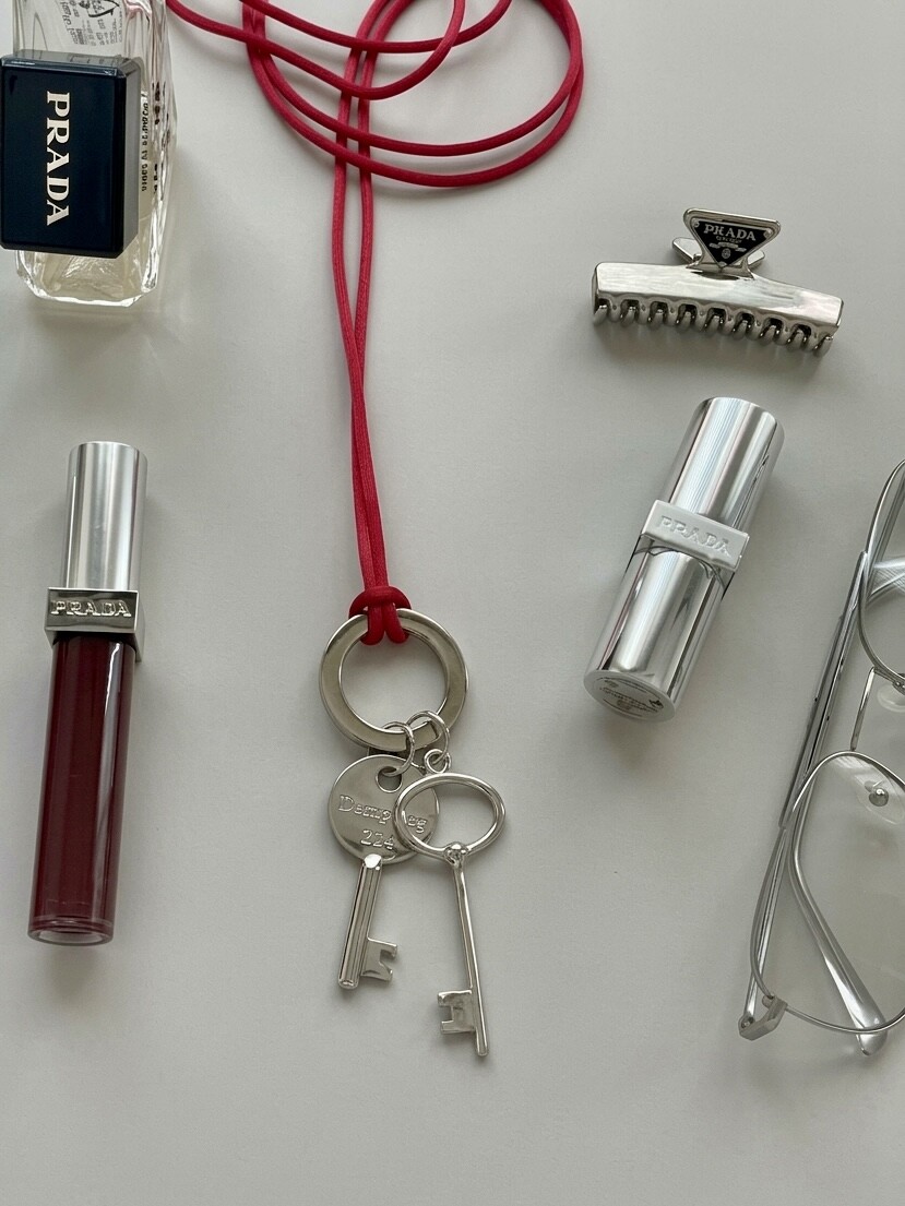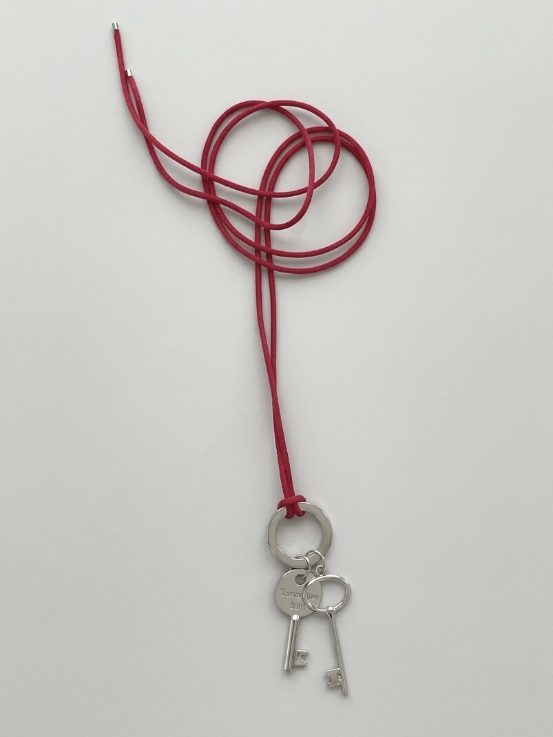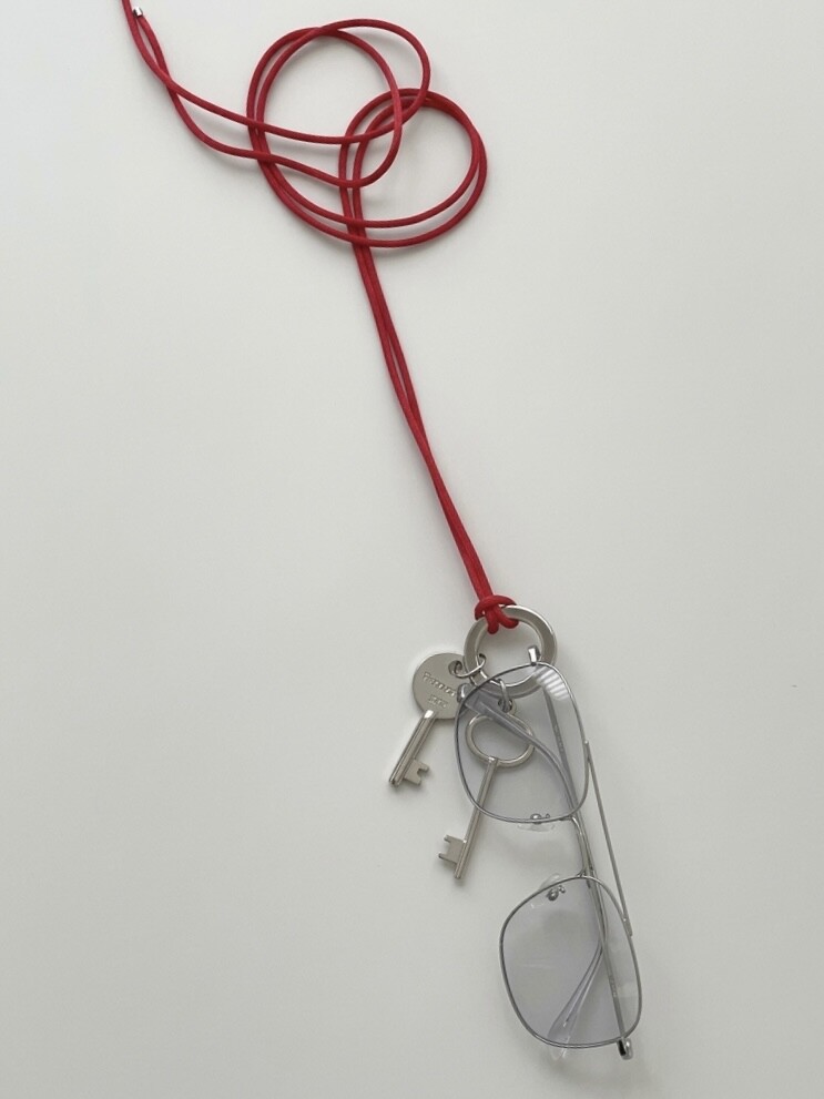 시선을 사로잡는 레드 실크 스트랩과 빈티지 키 펜던트 그리고 자유로운 길이 조절이 가능한 롱 네크리스입니다.