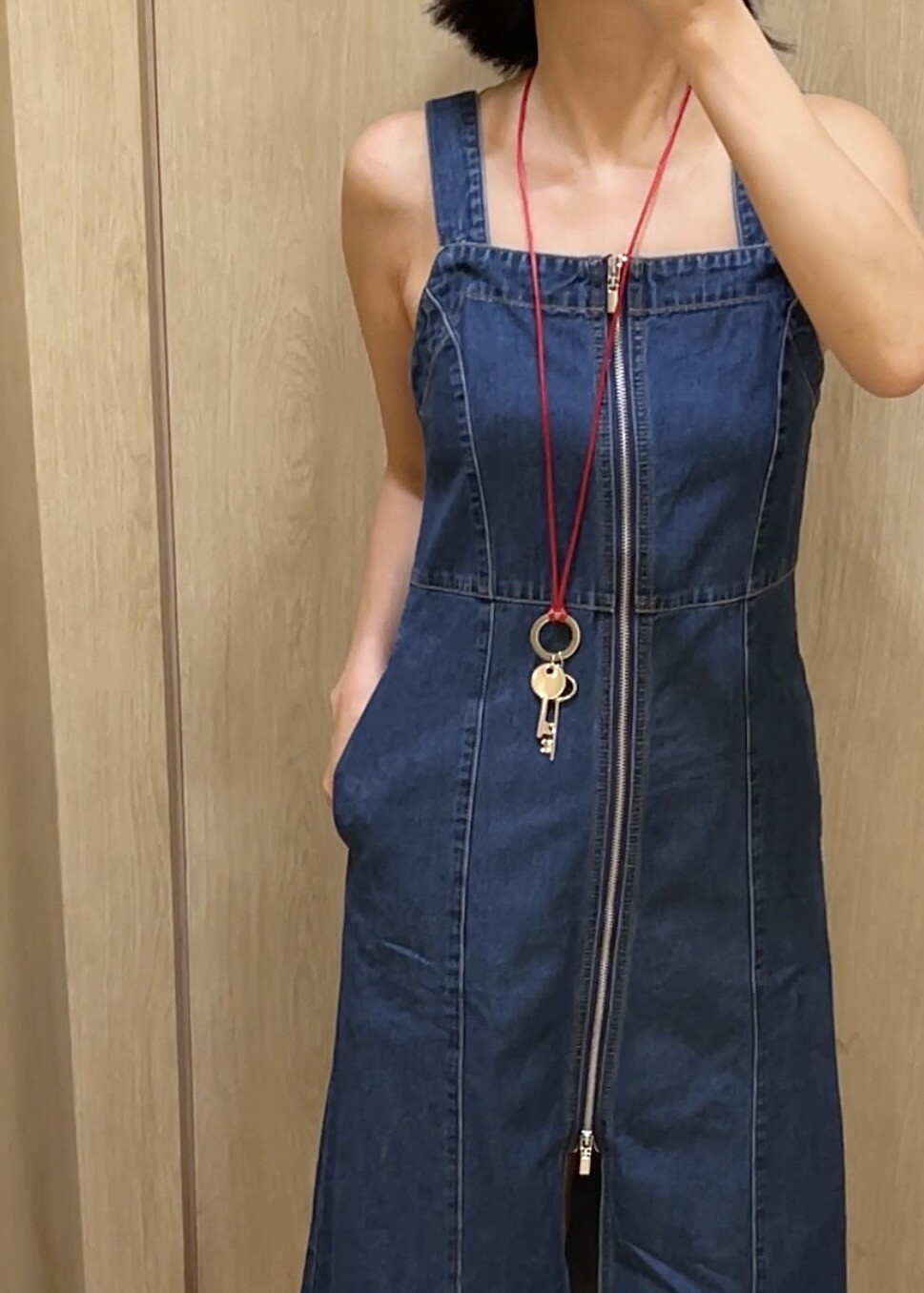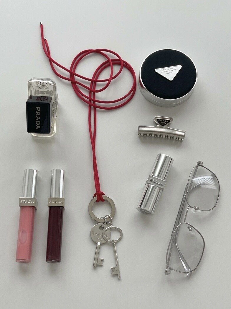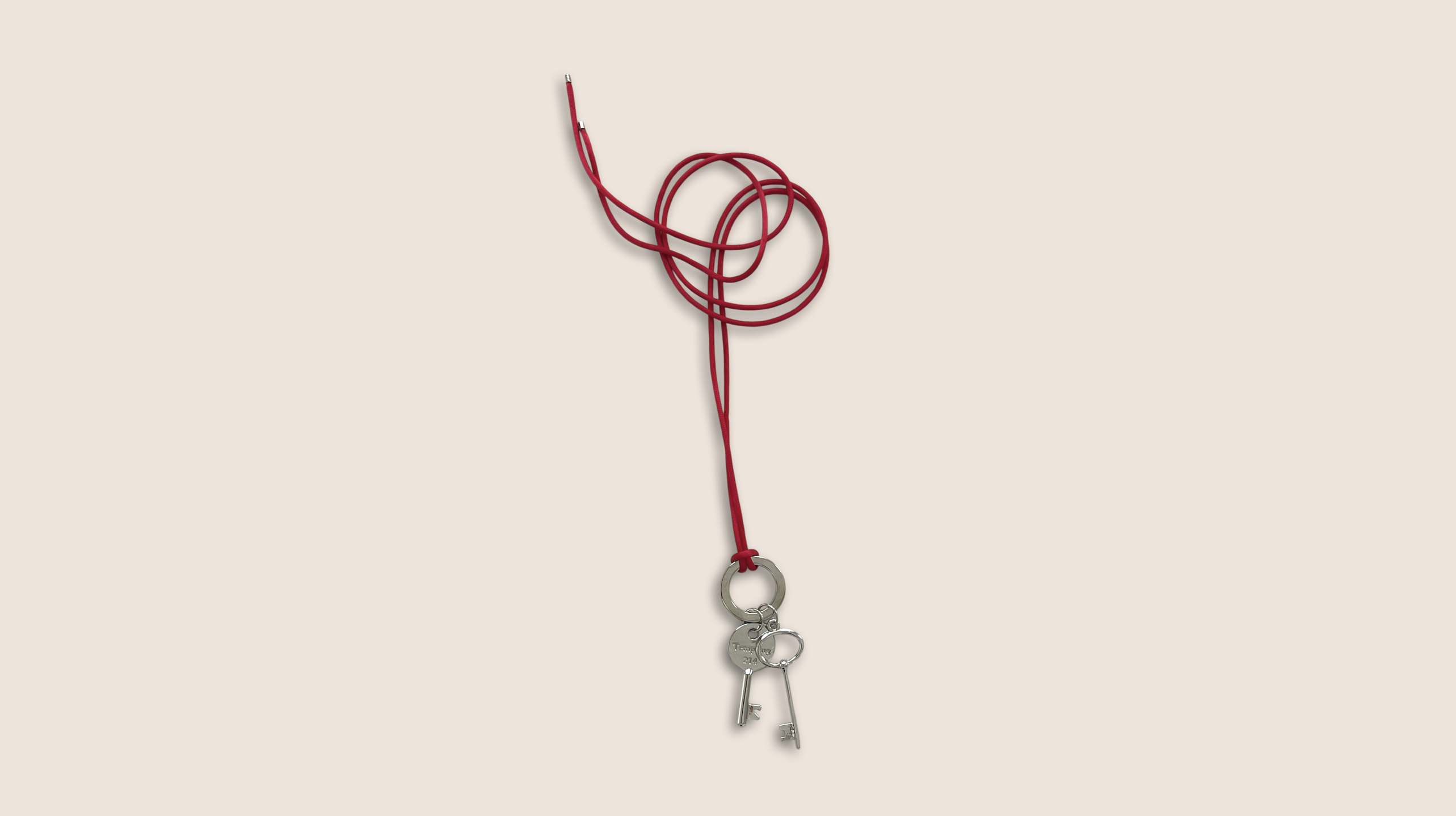 시선을 사로잡는 레드 실크 스트랩과 빈티지 키 펜던트 그리고 자유로운 길이 조절이 가능한 롱 네크리스입니다.