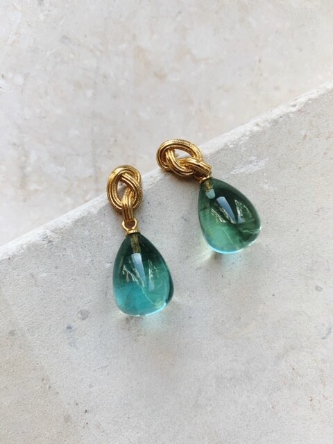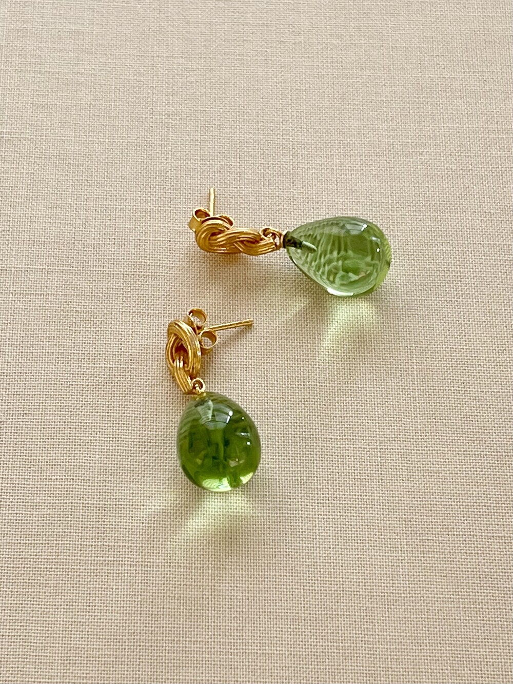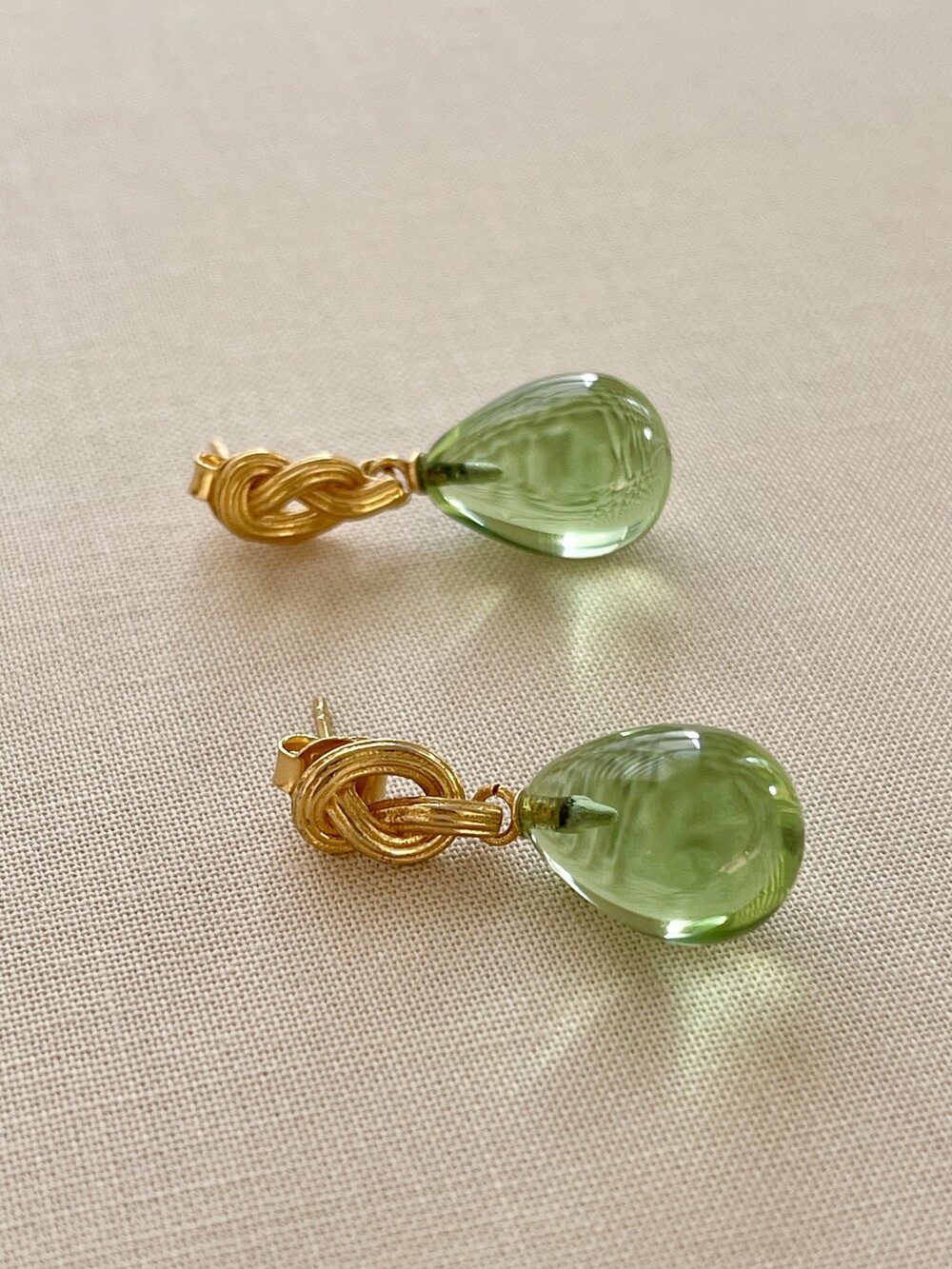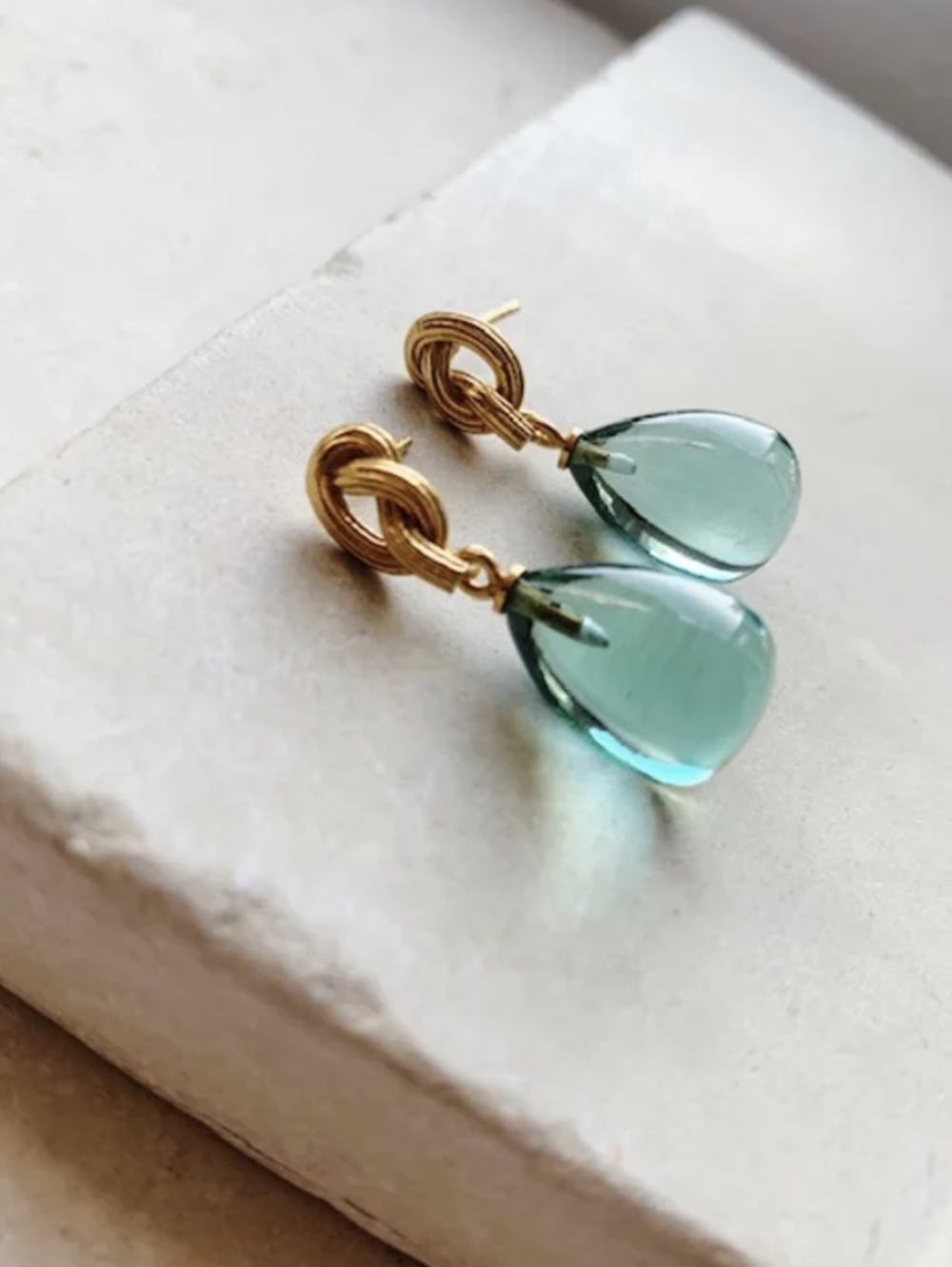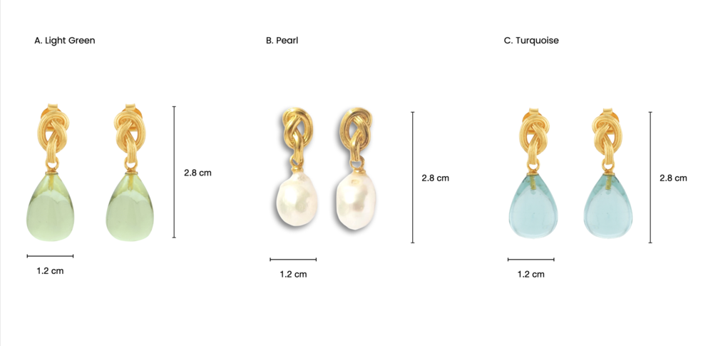 Shyla London 샤일라 런던의 Synthea Earring 신시아 이어링은 물방울 모양의 원석이 골드 컬러의 매듭에 이어져 있는 디자인으로 클래식하면서도 고급스러운 무드를 연출시켜줍니다. Synthea Earring 신시아 이어링을 Light Green 라이트그린, Pearl 펄, Turquoise 터콰이즈 총 세가지 컬러로 소개해드립니다. 모든 제품은 22K 도금된 스털링 실버로 제작되었습니다.