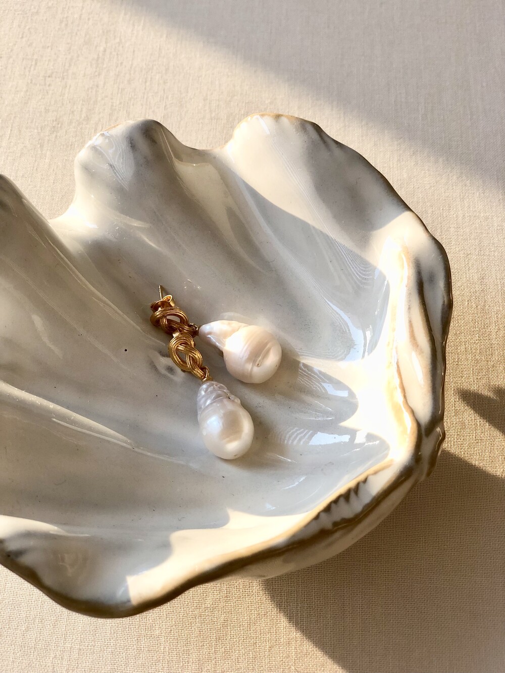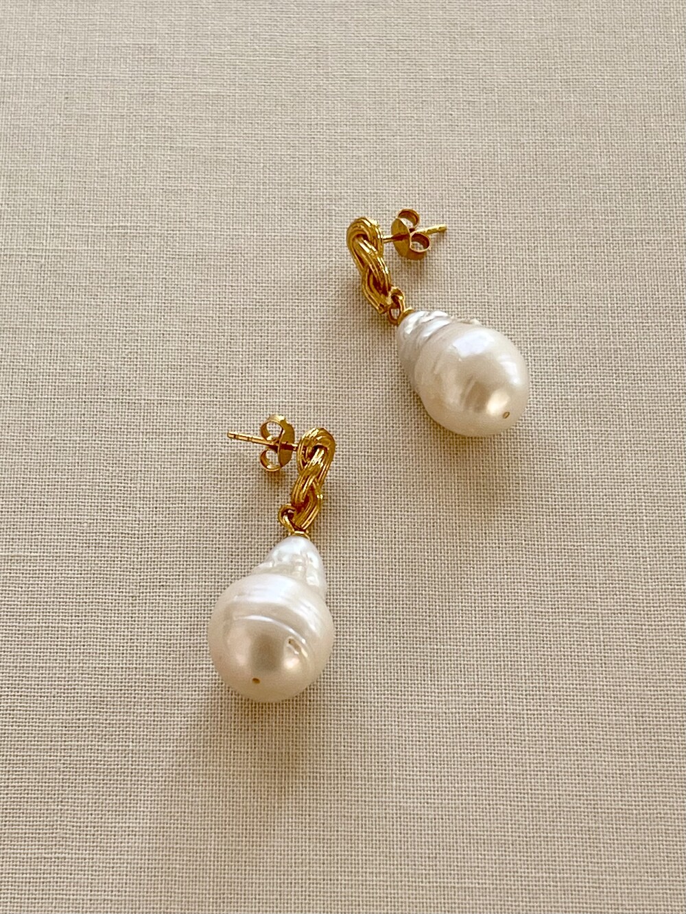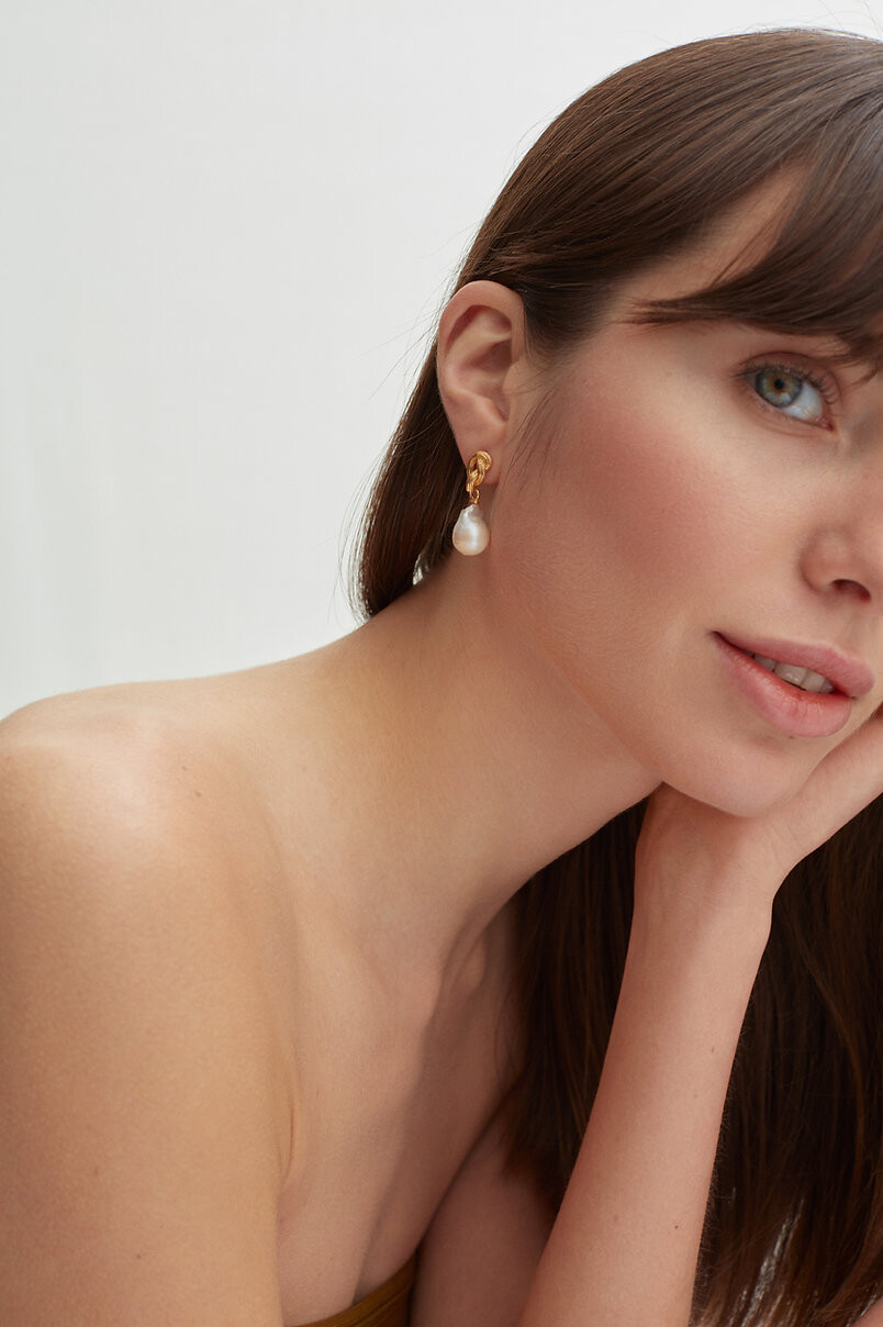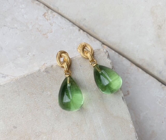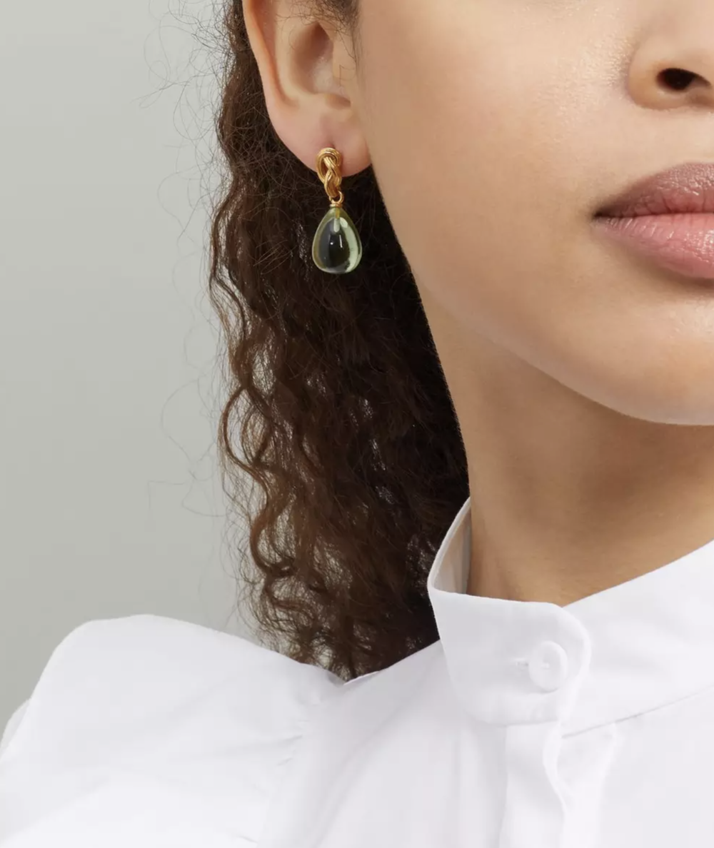 Shyla London 샤일라 런던의 Synthea Earring 신시아 이어링은 물방울 모양의 원석이 골드 컬러의 매듭에 이어져 있는 디자인으로 클래식하면서도 고급스러운 무드를 연출시켜줍니다. Synthea Earring 신시아 이어링을 Light Green 라이트그린, Pearl 펄, Turquoise 터콰이즈 총 세가지 컬러로 소개해드립니다. 모든 제품은 22K 도금된 스털링 실버로 제작되었습니다.