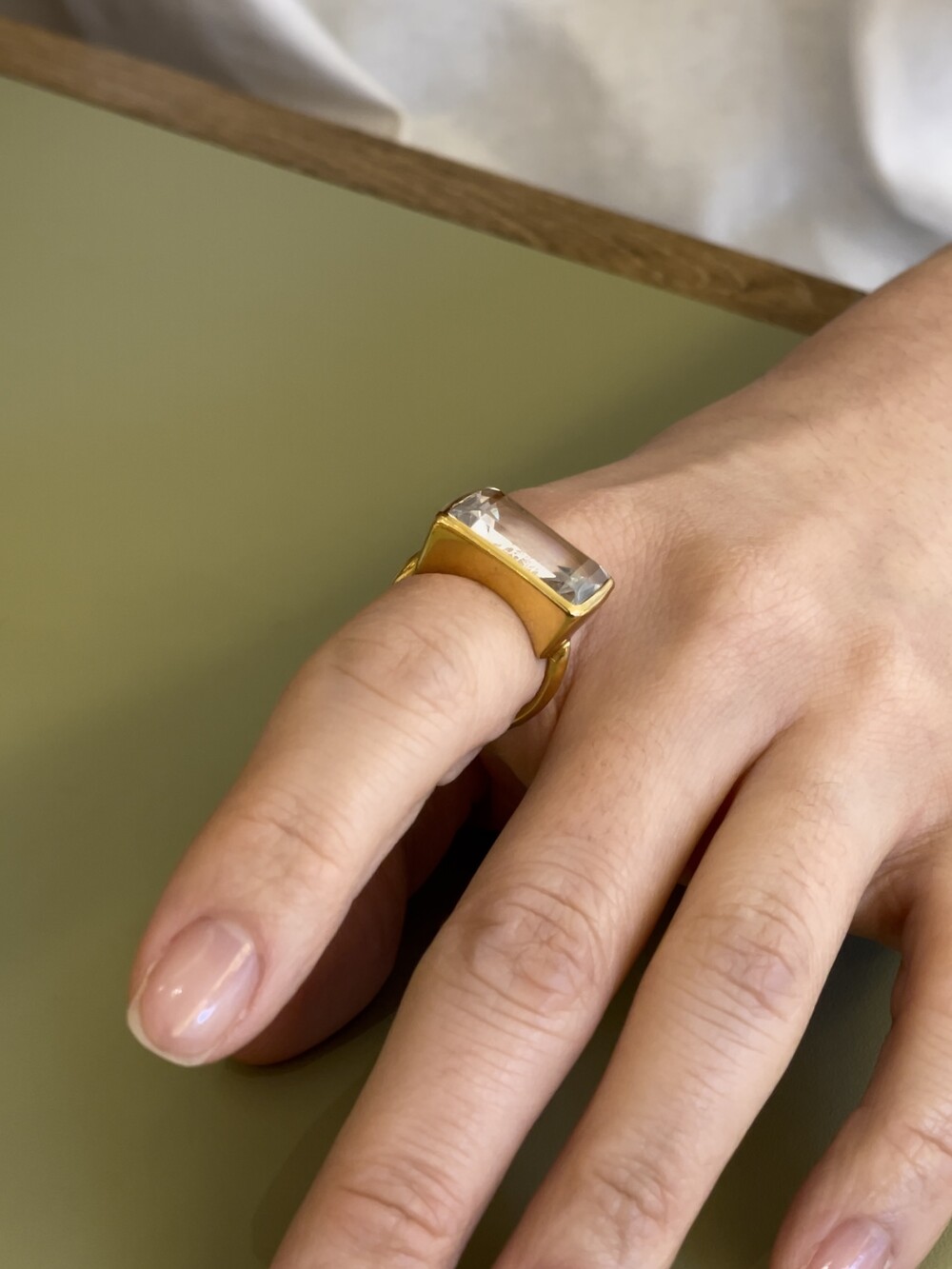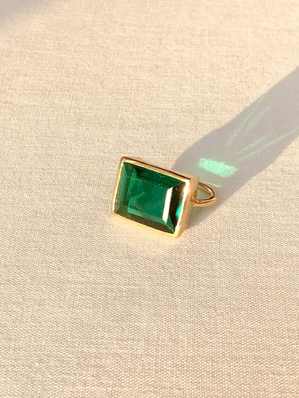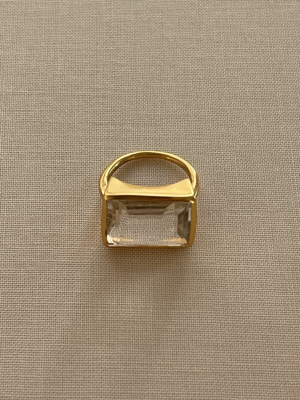 가로 1.8 cm 세로 1.3cm 사이즈의 볼드한 원석을 Clear 클리어, Emerald 에머랄드 두가지 컬러로 소개합니다. 모든 제품은 천연 스톤과 22K 도금된 스털링 실버로 제작되었습니다.