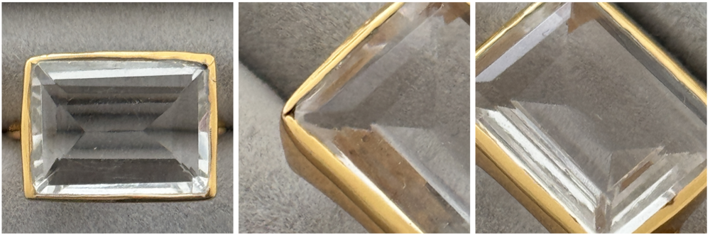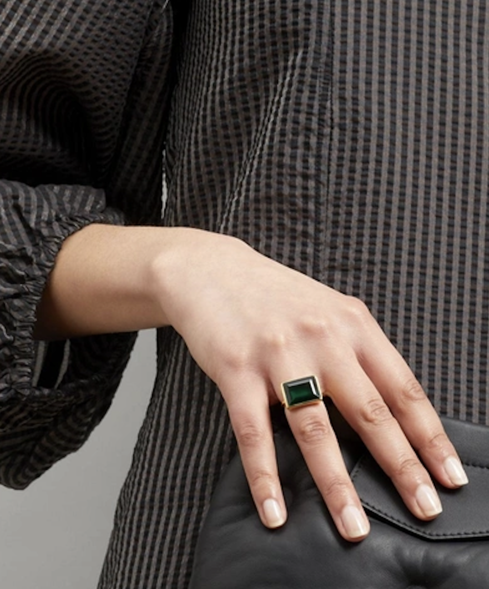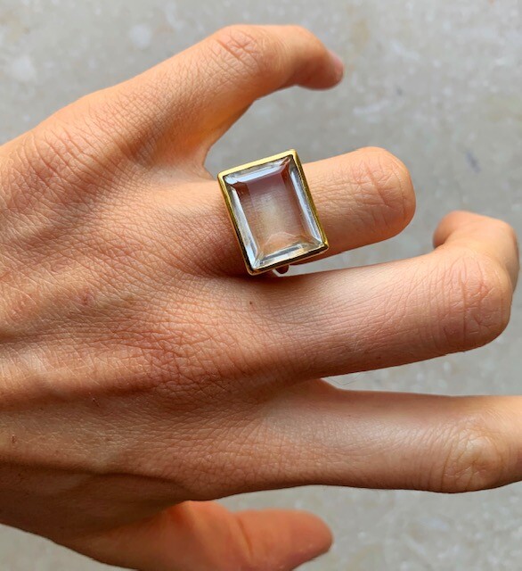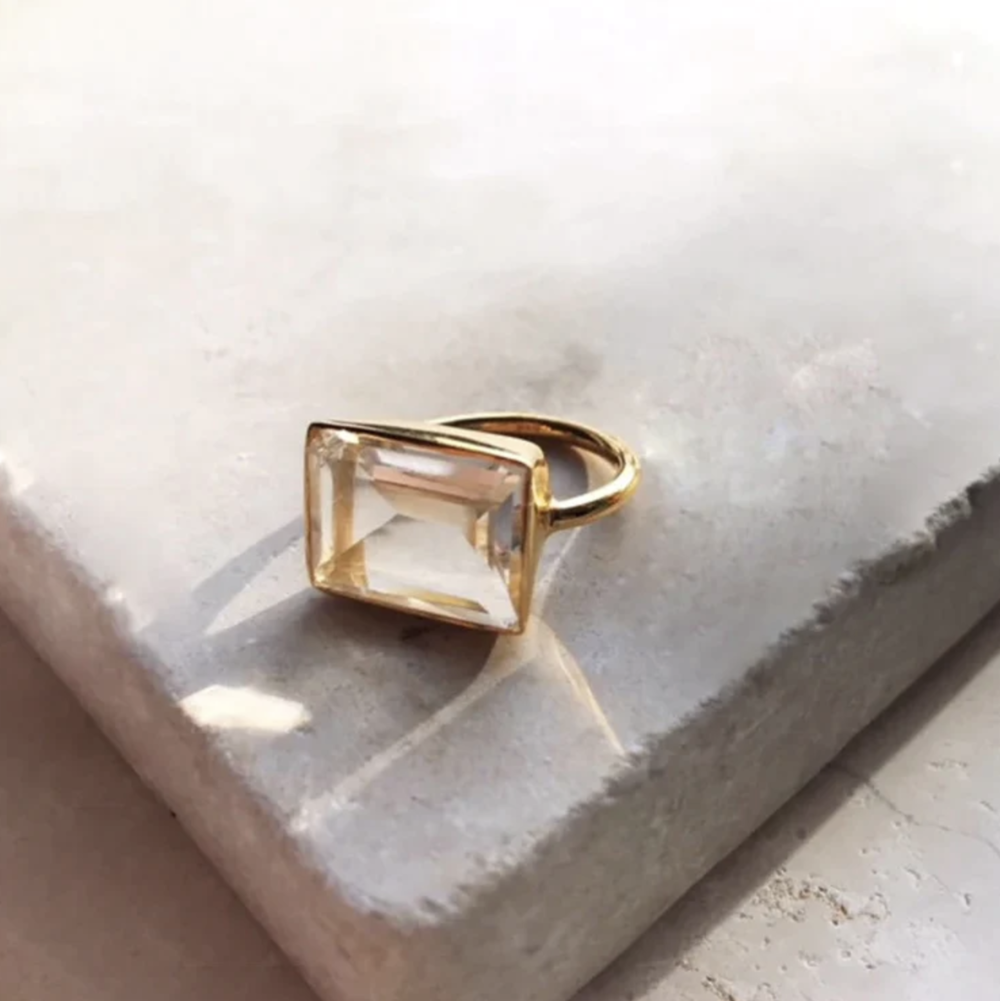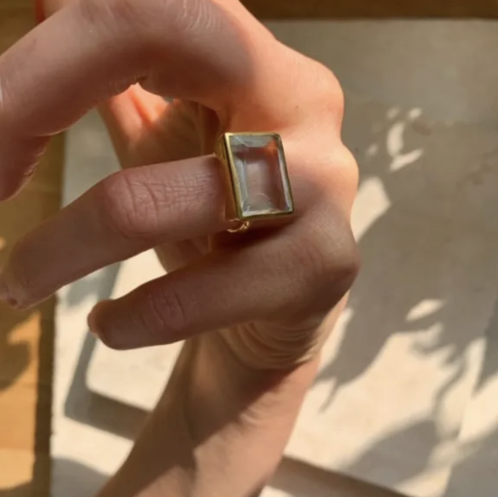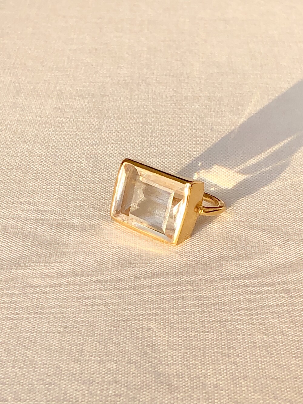 가로 1.8 cm 세로 1.3cm 사이즈의 볼드한 원석을 Clear 클리어, Emerald 에머랄드 두가지 컬러로 소개합니다. 모든 제품은 천연 스톤과 22K 도금된 스털링 실버로 제작되었습니다.