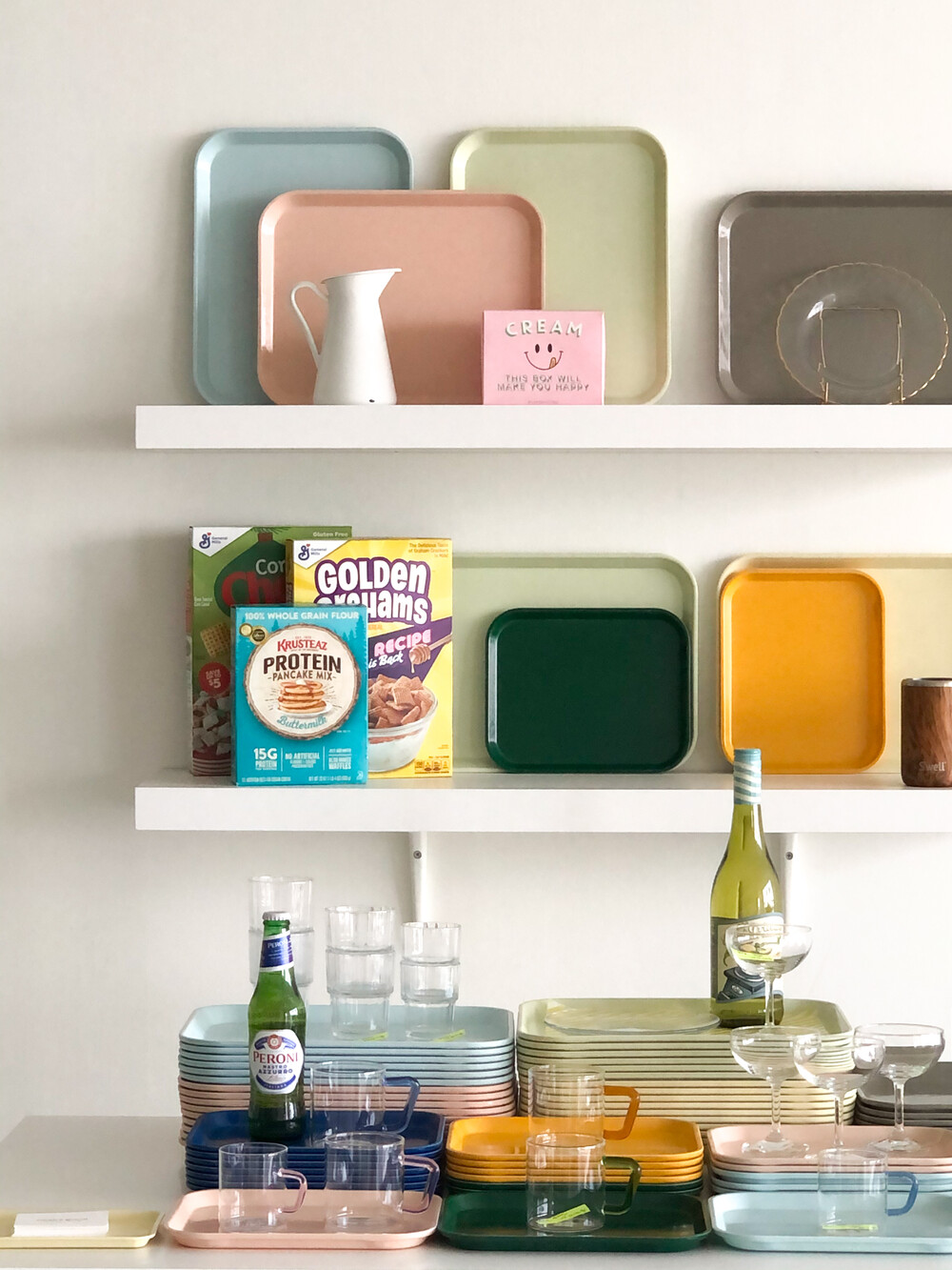 혼밥이나 디저트, 티타임, 어린 자녀들의 스낵 타임을 위한 트레이 등 식기용 쟁반 뿐만 아니라 서랍이나 화장대, 선반 위 소품 정리 용도로 활용 가능합니다. 다양한 테이블웨어와 조화롭게 어울리는 은은한 파스텔 톤 컬러와 보기만해도 시원해보이는 쿨톤 컬러들까지 무려 7가지의 매력적인 컬러로 선보이는 컬러 트레이는 포토제닉한 굿즈로 유명 카페, 베이커리, 브런치 레스토랑에서도 널리 사용되고 있어요.
