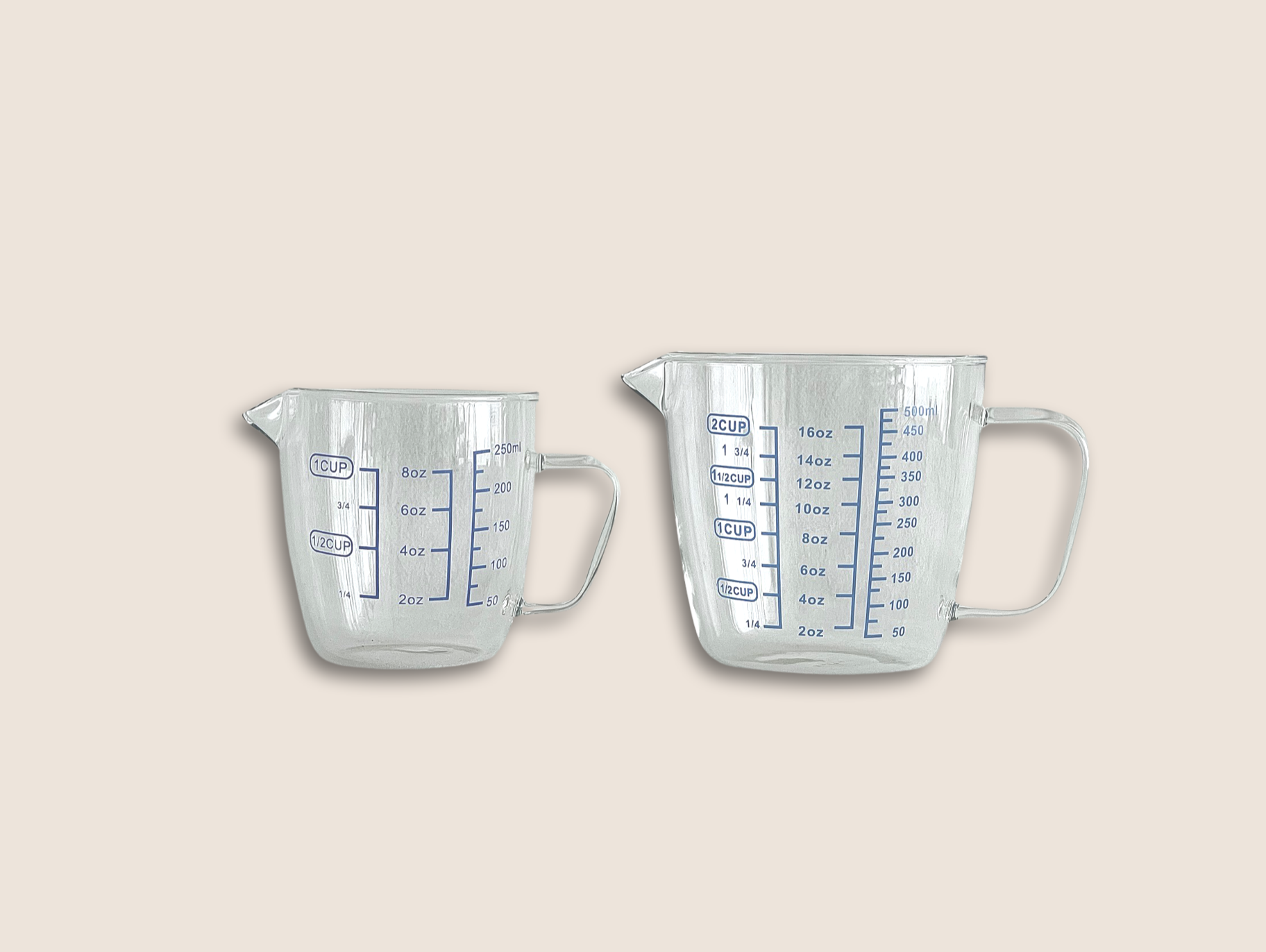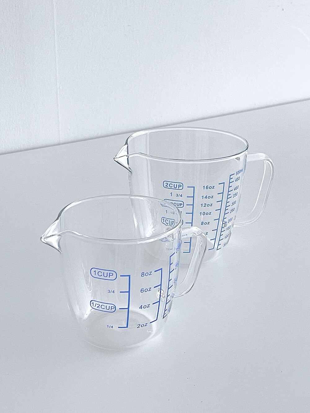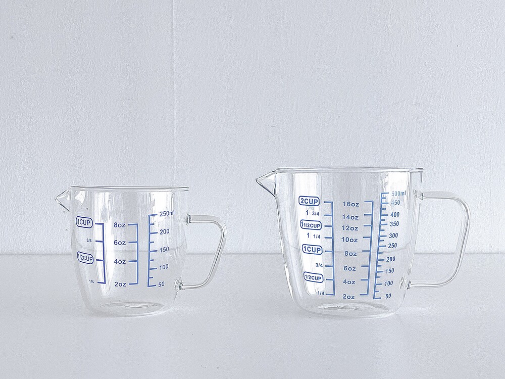 블루 레터링이 매력 포인트인 Blue Measuring Cup 블루 계량컵을 250ml와 500ml 두가지 사이즈로 소개합니다. 밀리리터(ml), 온스(oz), 컵(cup) 총 세가지의 단위가 표시되어 단위변환의 번거로움 없이 편하게 사용 가능합니다. 내열 강화유리 소재로 식기세척기, 전자레인지, 냉장고 사용이 두루 가능한 내구성까지 겸비한 블루 계량컵을 합리적인 가격으로 만나보세요.