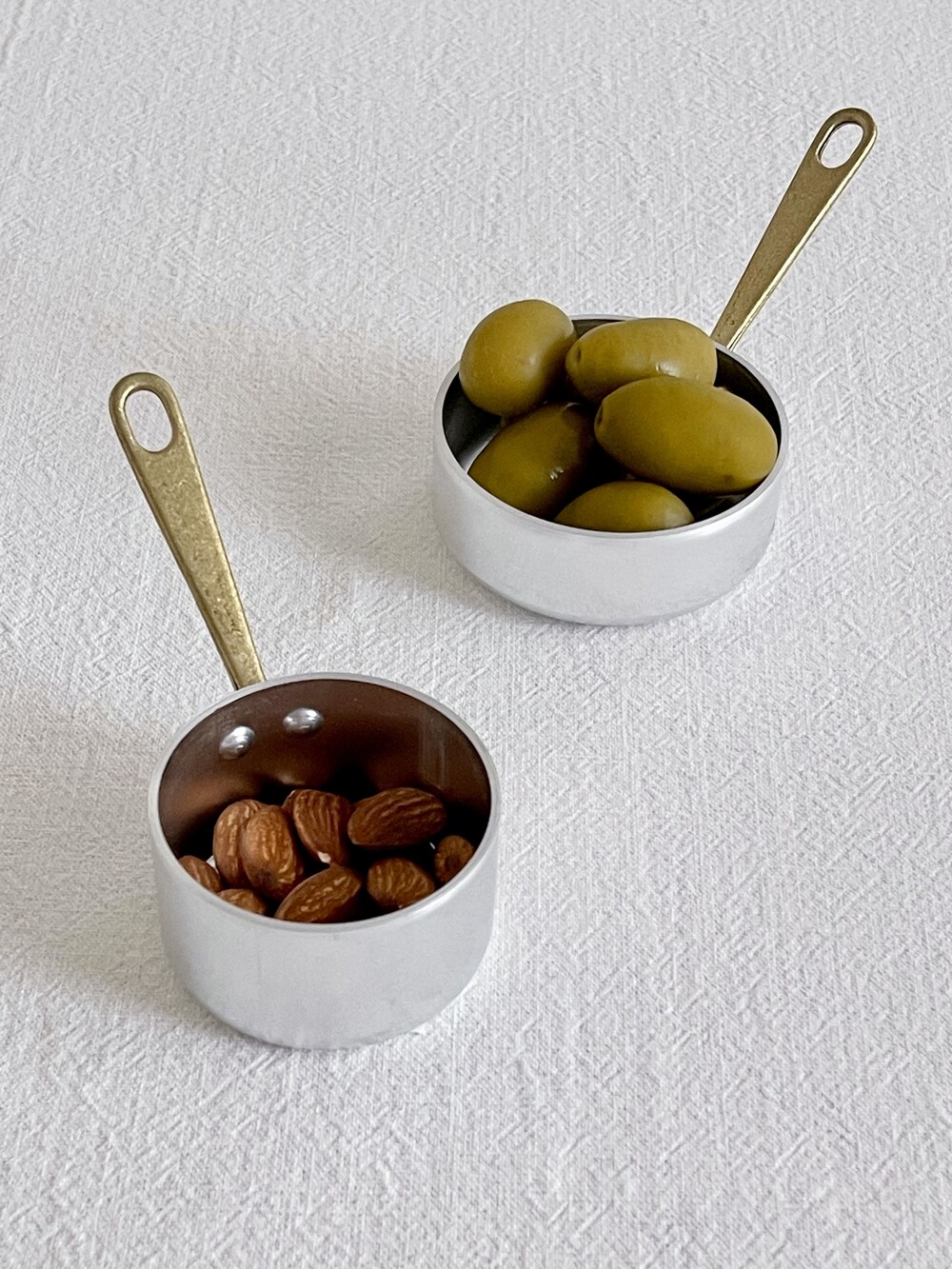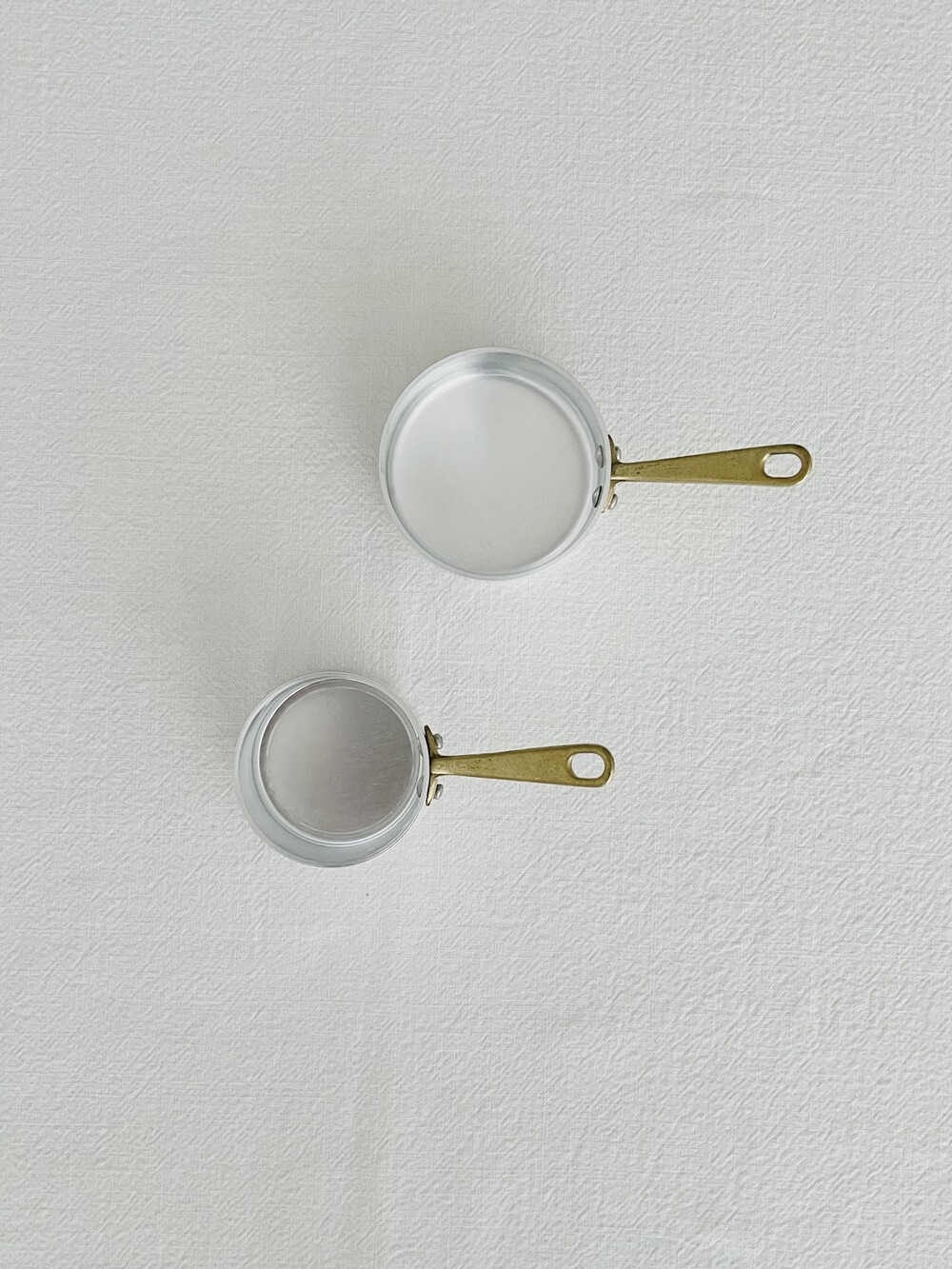 Ottinetti 오티네티의 Mini Sauce Pan 미니 소스팬을 두 가지 사이즈로 소개합니다. 높은 열전도율과 경량의 무게, 앙증맞은 사이즈로 찍어 먹는 소스를 담기 좋은 Deep Sauce Pan 딥 소스팬과 올리브나 피클, 소스, 드레싱 모두 담기 좋은 Sauce Pan 소스팬 두 가지 사이즈 입니다. 알루미늄과 브라스 핸들의 조합 그 자체만으로 앤틱하고 빈티지스러운 무드를 연출합니다.