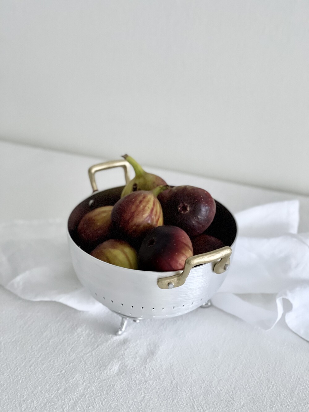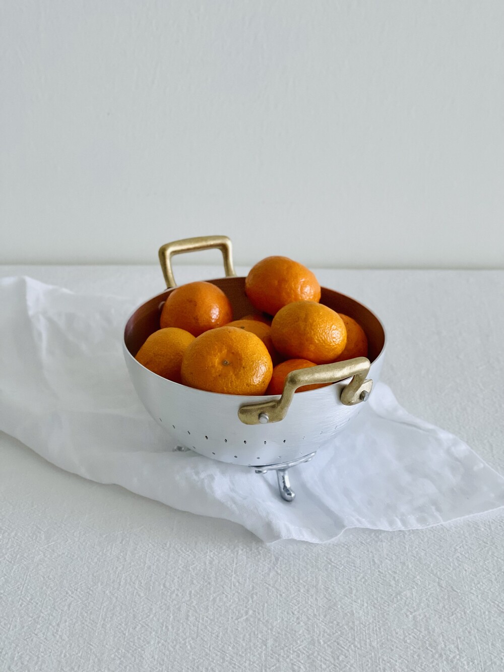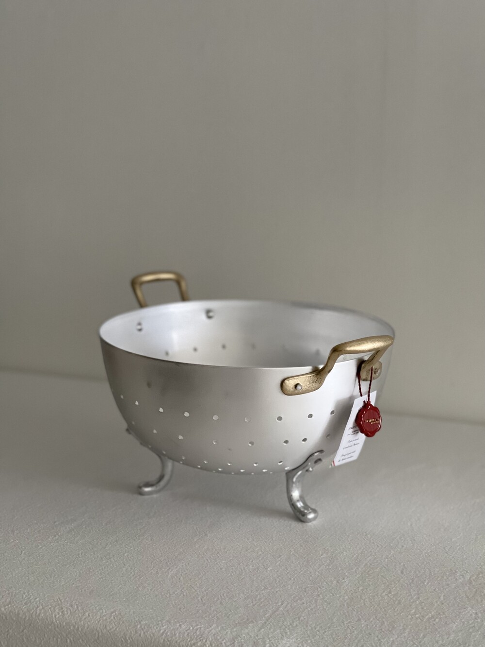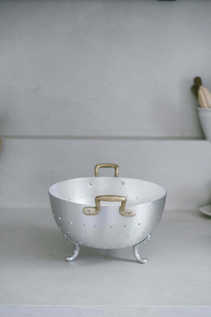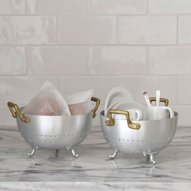 Ottinetti 오티네티의 Mini Colander 미니 콜랜더를 14cm와 16cm 두 가지 사이즈로 소개합니다. 세척한 식재료를 담아 놓거나 옮기기에 좋으며, 빵이나 과일, 간단한 스낵 및 핑거푸드를 담아 놓을 수 있는 바스켓 등 다양하게 활용할 수 있는 아이템 입니다. 작은 바구니 모양에 세발 받침, 알루미늄과 브라스 핸들의 조합 그 자체만으로 앤틱하고 빈티지스러운 무드를 연출합니다.