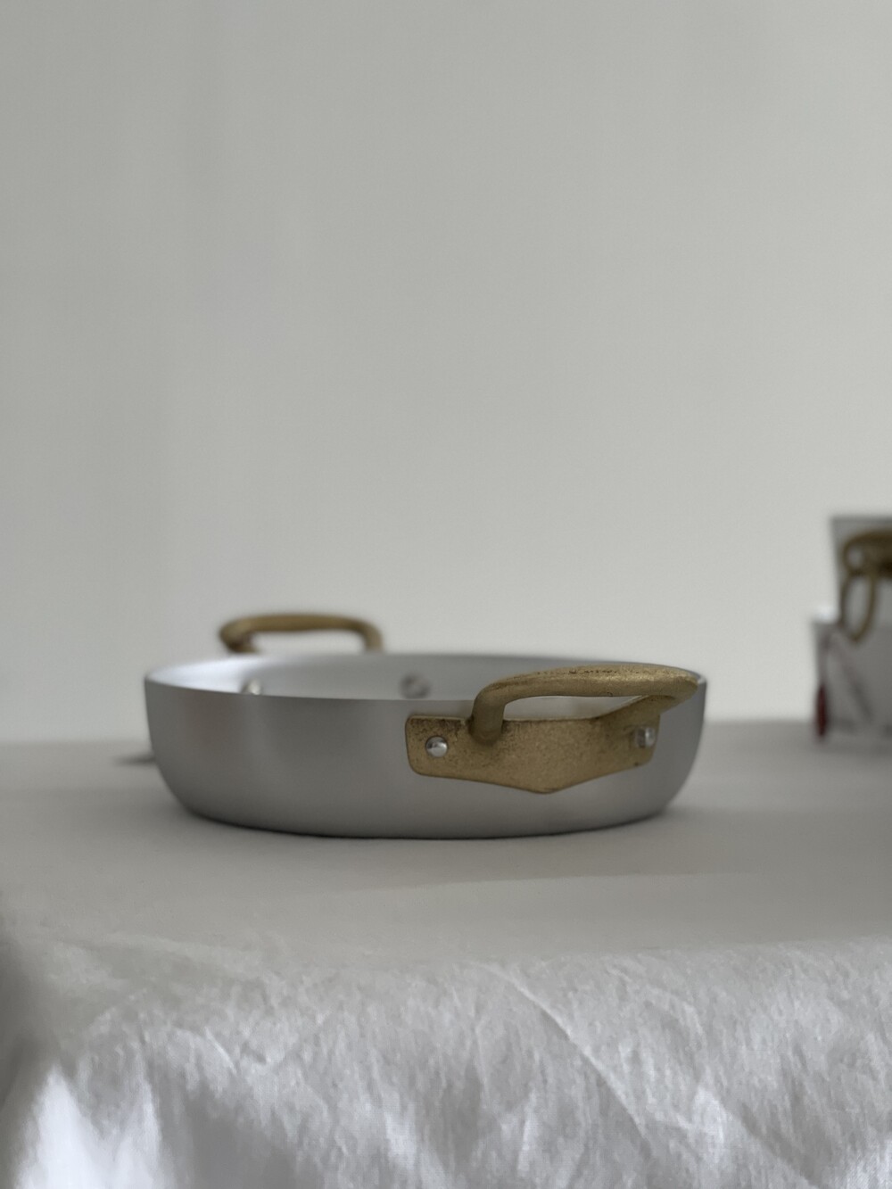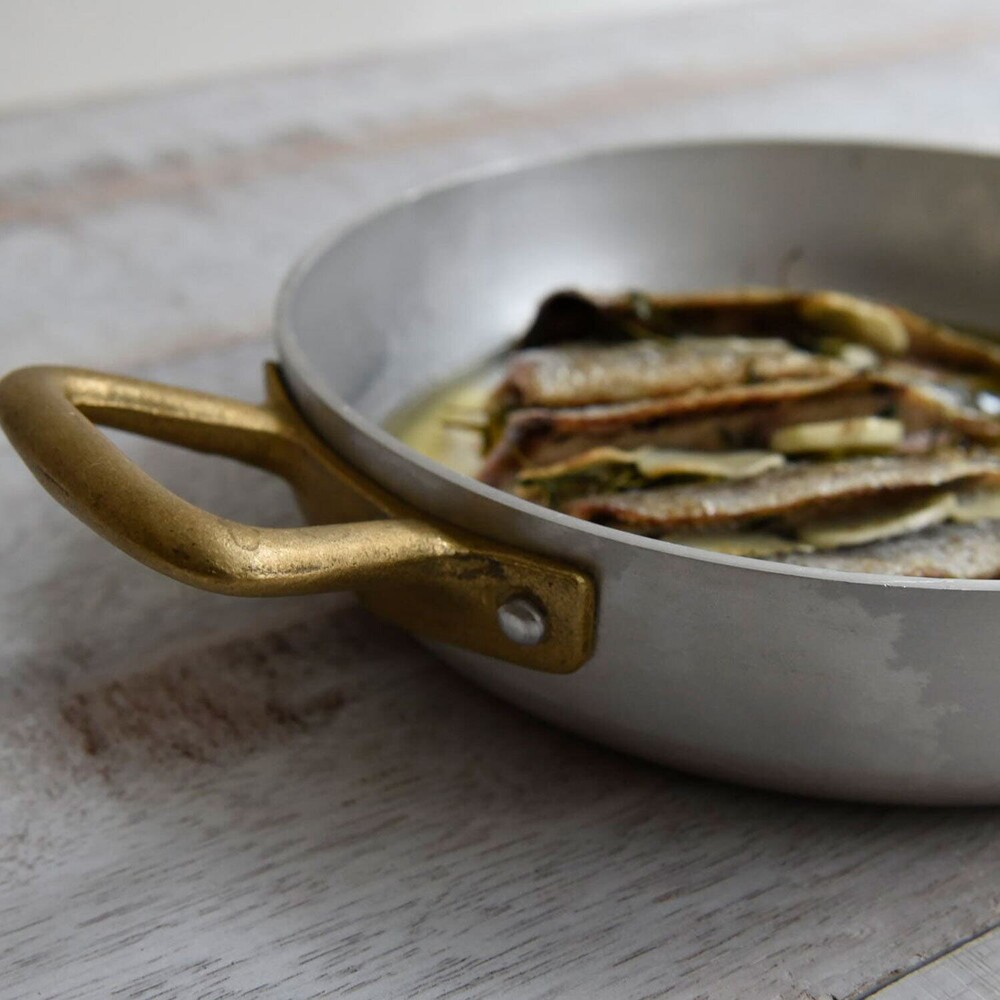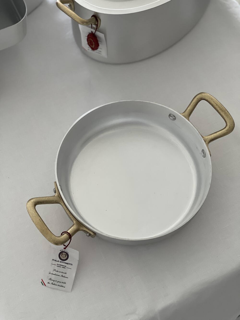 Ottinetti Round Frying Pan with Handle 오티네티 양수 후라이팬을 두가지 사이즈로 소개합니다. 오티네티의 다른 팬과는 다르게 무게감이 있는 모델로 조리시 안정감을 주는 후라이팬입니다. 알루미늄의 높은 열전도율로 라자냐, 파스타는 물론 깊이감이 있어 약간의 국물이 있는 있는 요리 시에도 편리하게 사용하기 좋습니다. 알루미늄과 브라스 핸들 조합은 그 자체만으로 앤틱하고 빈티지스러운 무드를 연출할 뿐만 아니라 오브제로도 멋스러움을 더합니다.