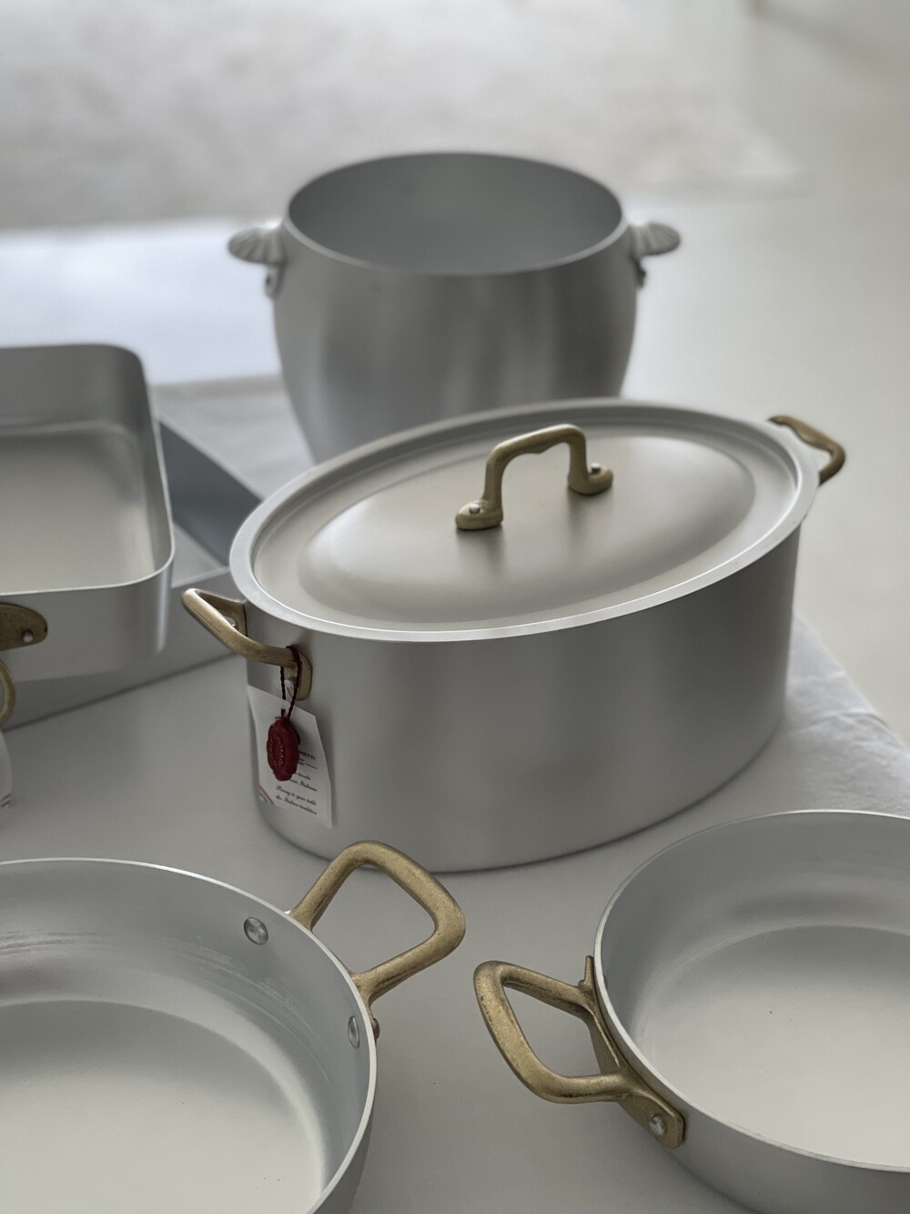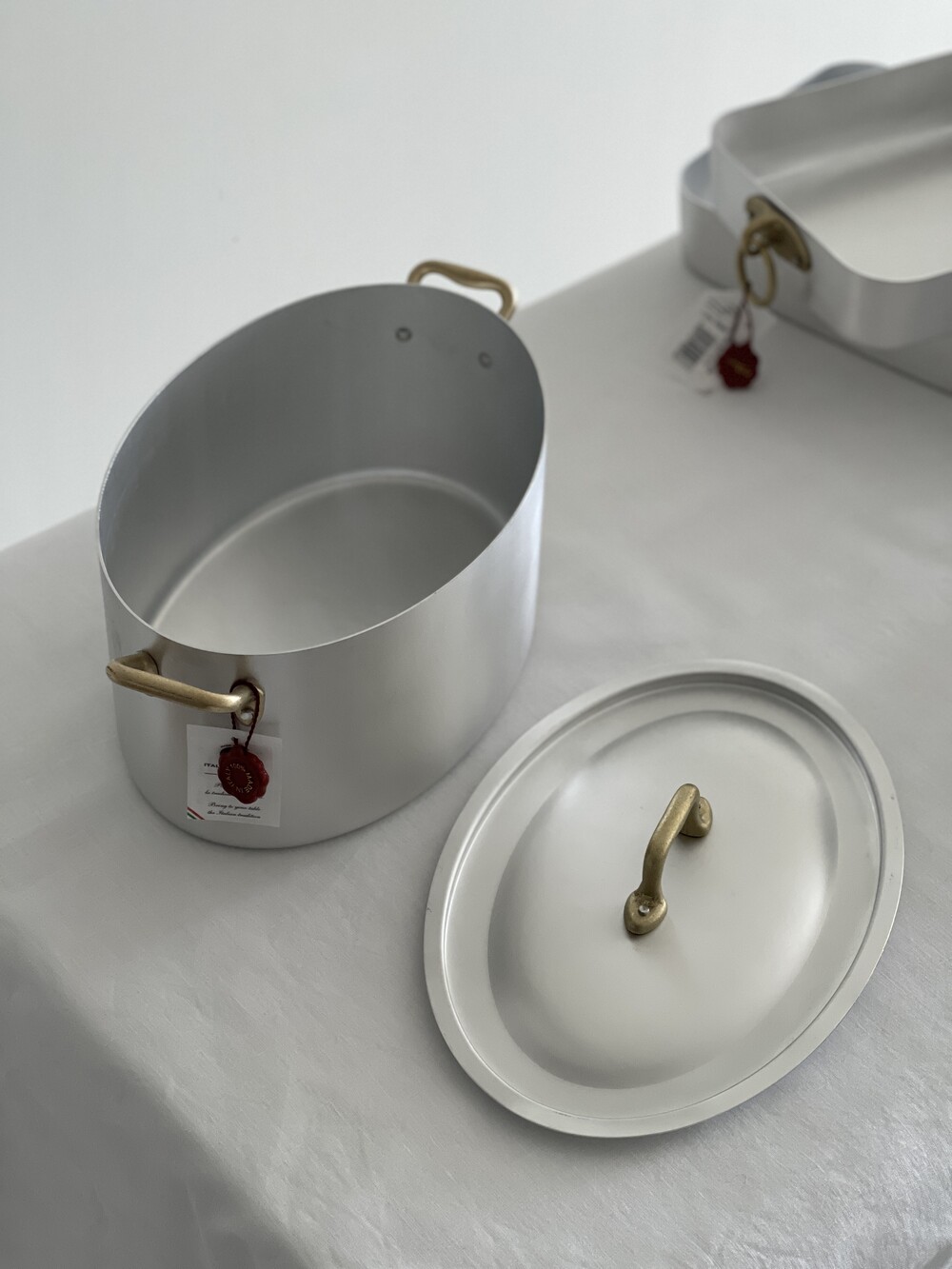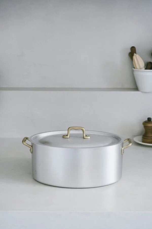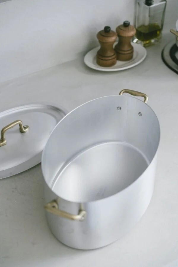Ottinetti Oval Pot with Lid 오티네티 오발 양수냄비 뚜껑과 함께 나온 상품입니다. 높은 열전도율과 경량의 무게로 조리 시 매우 편리하게 사용할 수 있습니다. 충분한 깊이감으로 국이나 육수를 끓이거나, 스튜 등을 조리하실 때 추천드립니다. 알루미늄과 브라스 핸들 조합은 그 자체만으로 앤틱하고 빈티지스러운 무드를 연출합니다.