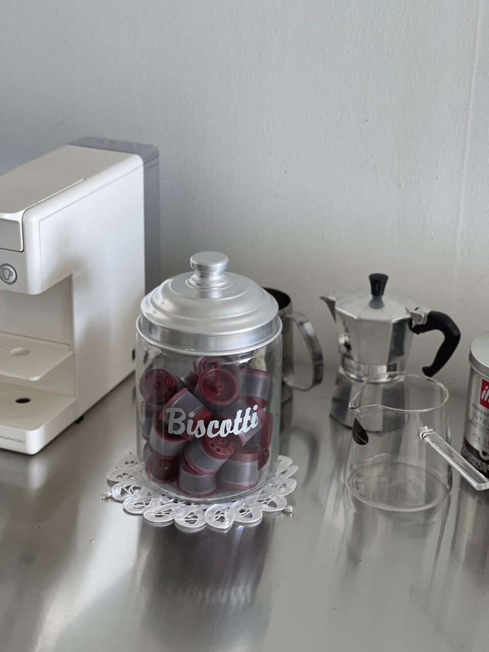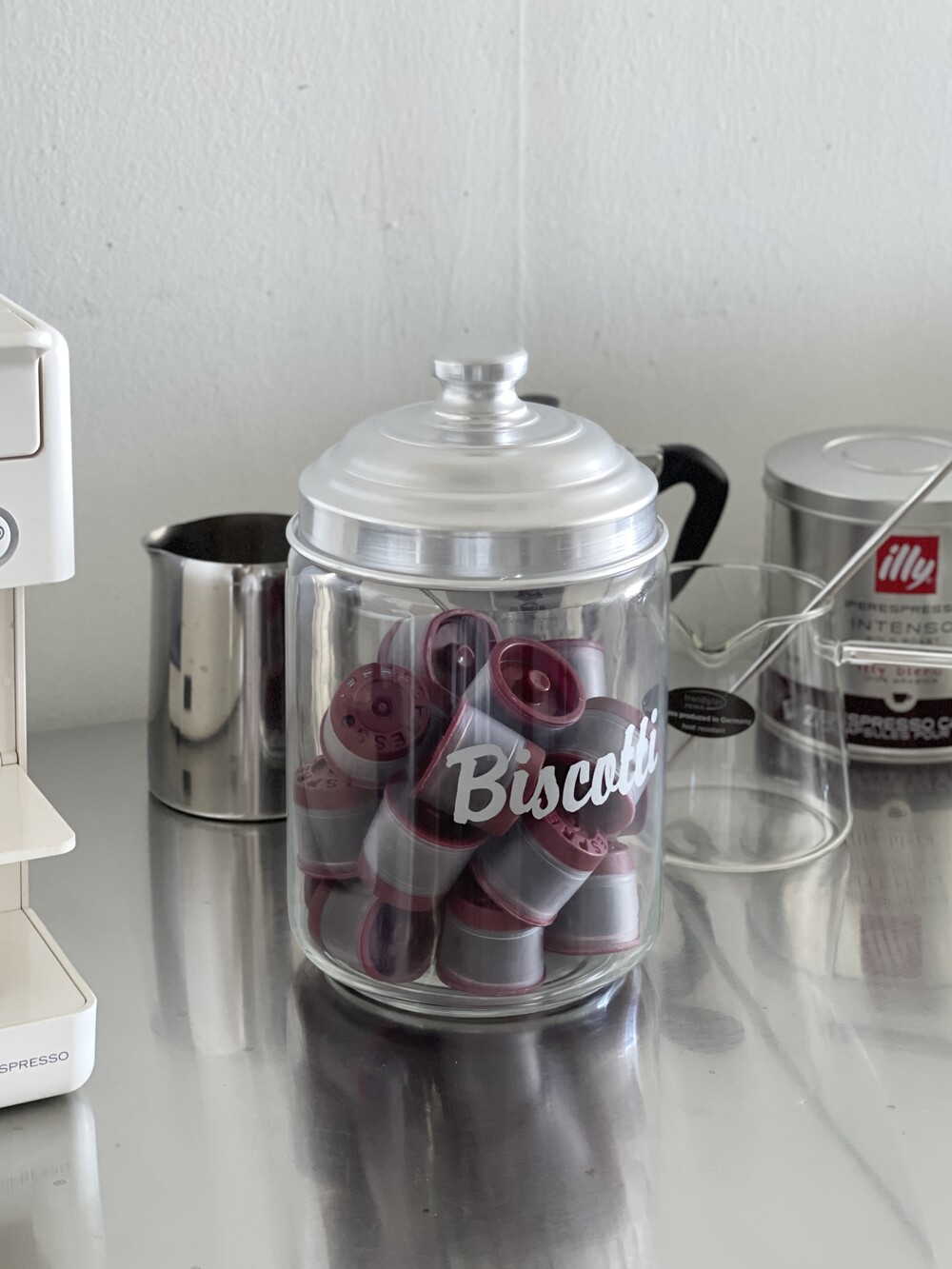 이탈리아 정통 쿠키 비스코티 보관을 위해 만들어진 Ottinetti Biscotti Canister 오티네티 비스코티 캐니스터(2L)는 비스코티는 물론 커피캡슐, 스낵류, 곡물류, 가루 식자재 등을 넉넉하게 보관하기 좋습니다. 알루미늄 리드와 클래식한 폰트가 클래식하고 앤틱한 무드를 연출할 수 있습니다.
