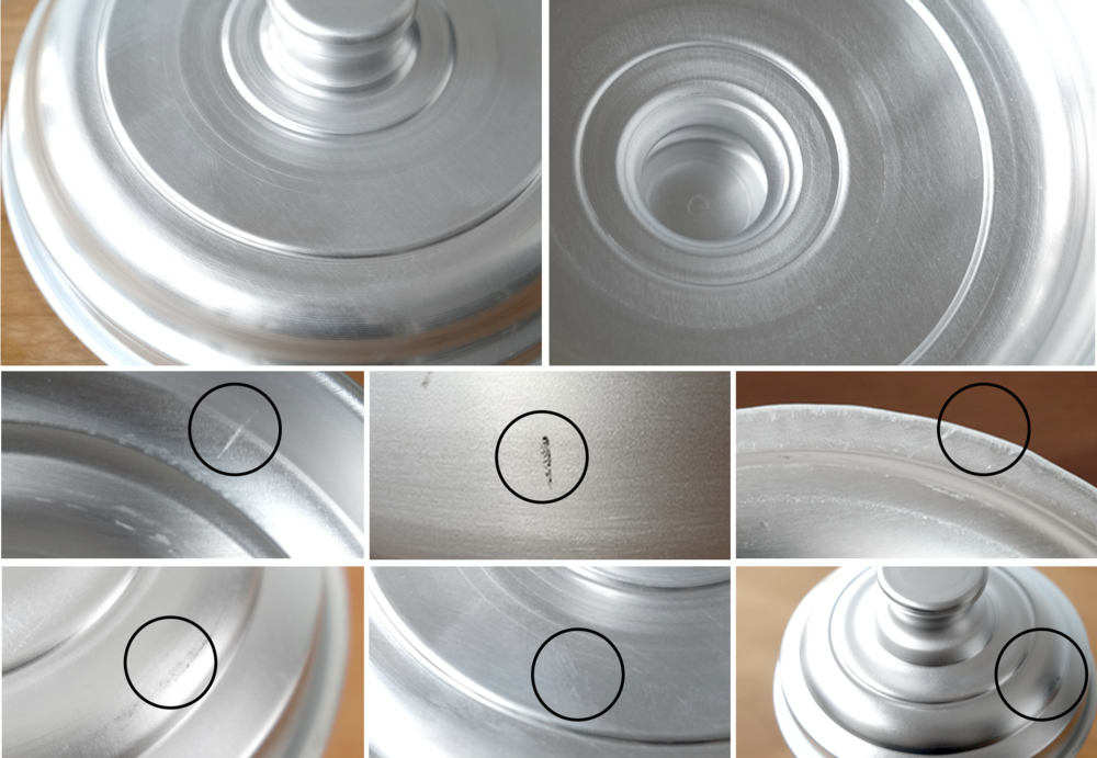 ※ 알루미늄은 경금속으로 스테인레스 만큼 단단한 소재가 아닙니다. 이러한 소재 특성으로 인해 미관상 미세한 미비점들이 보일 수 있으나 이는 제품 하자가 아닙니다.