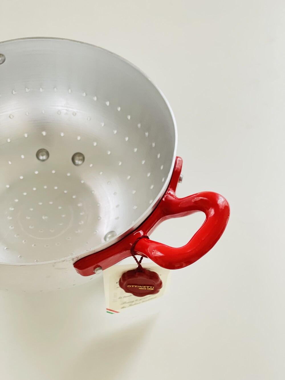 이탈리안 헤리티지를 담은 Ottinetti Mini Colander Rosso Natale 오티네티 미니 콜랜더 로쏘 나탈레 16cm는 크리스마스 레드를 상징하는 고급스러운 레드 핸들이 특징입니다.