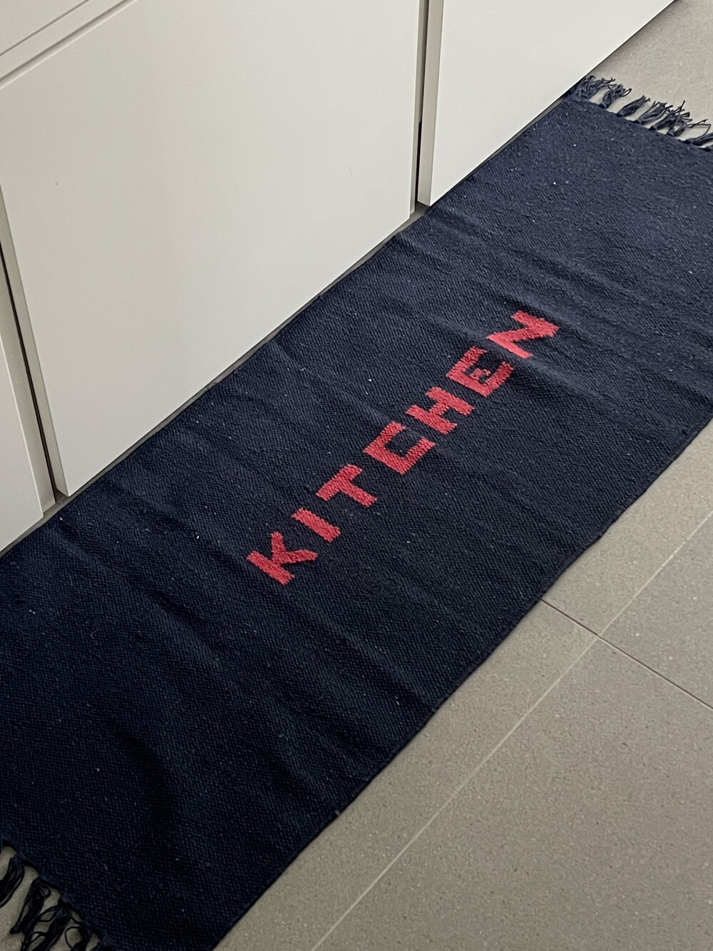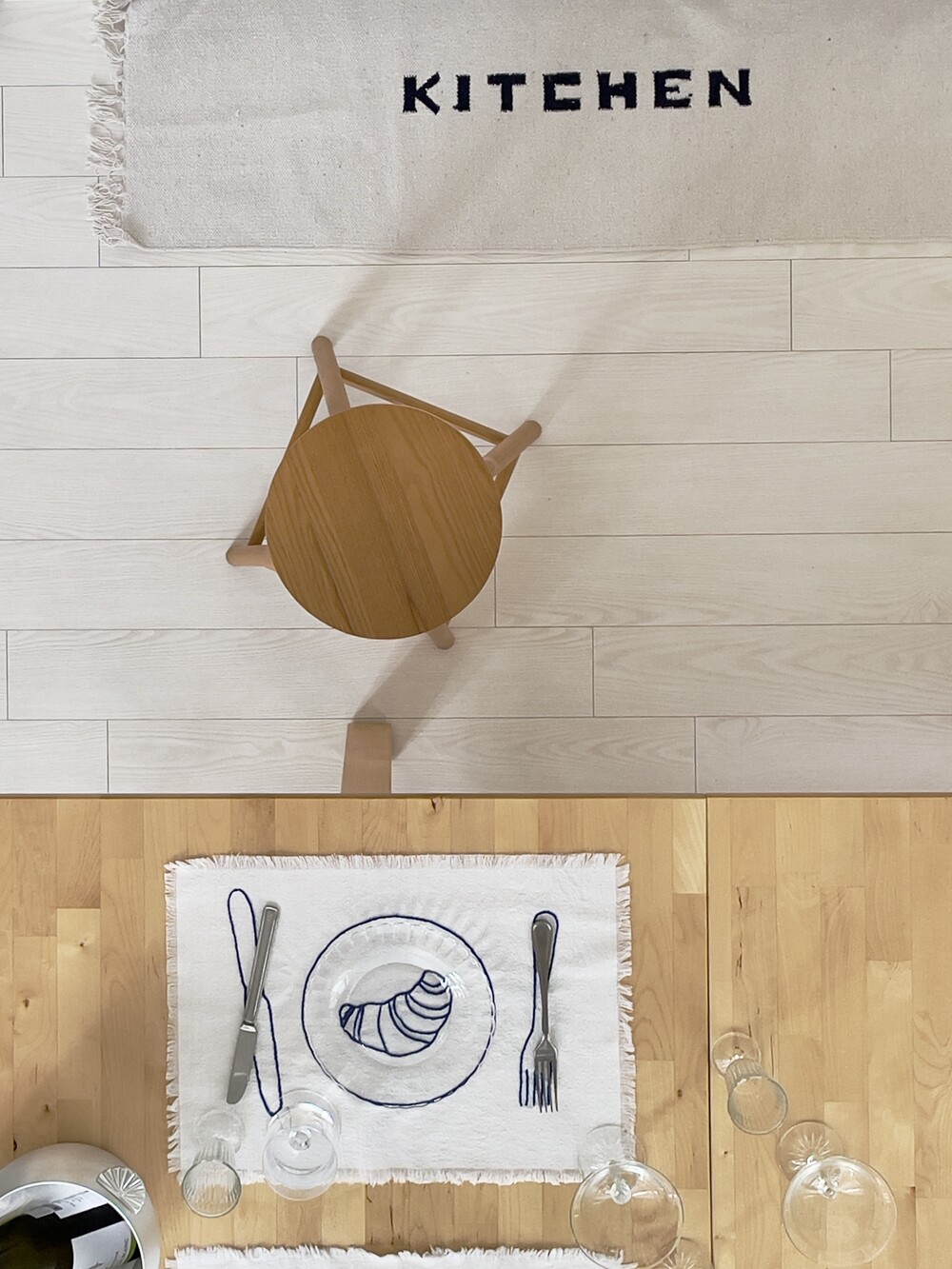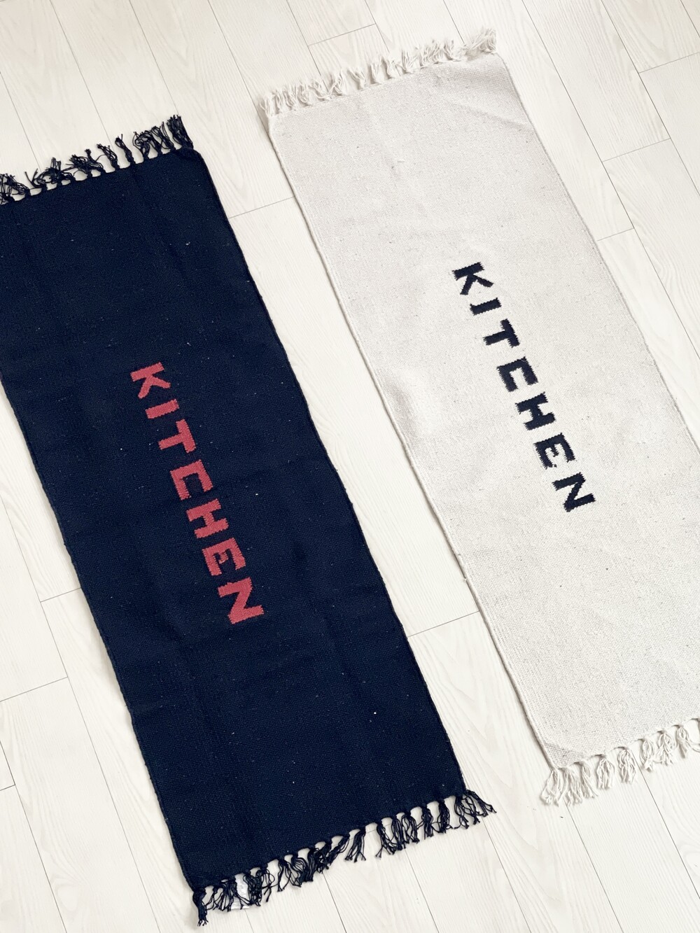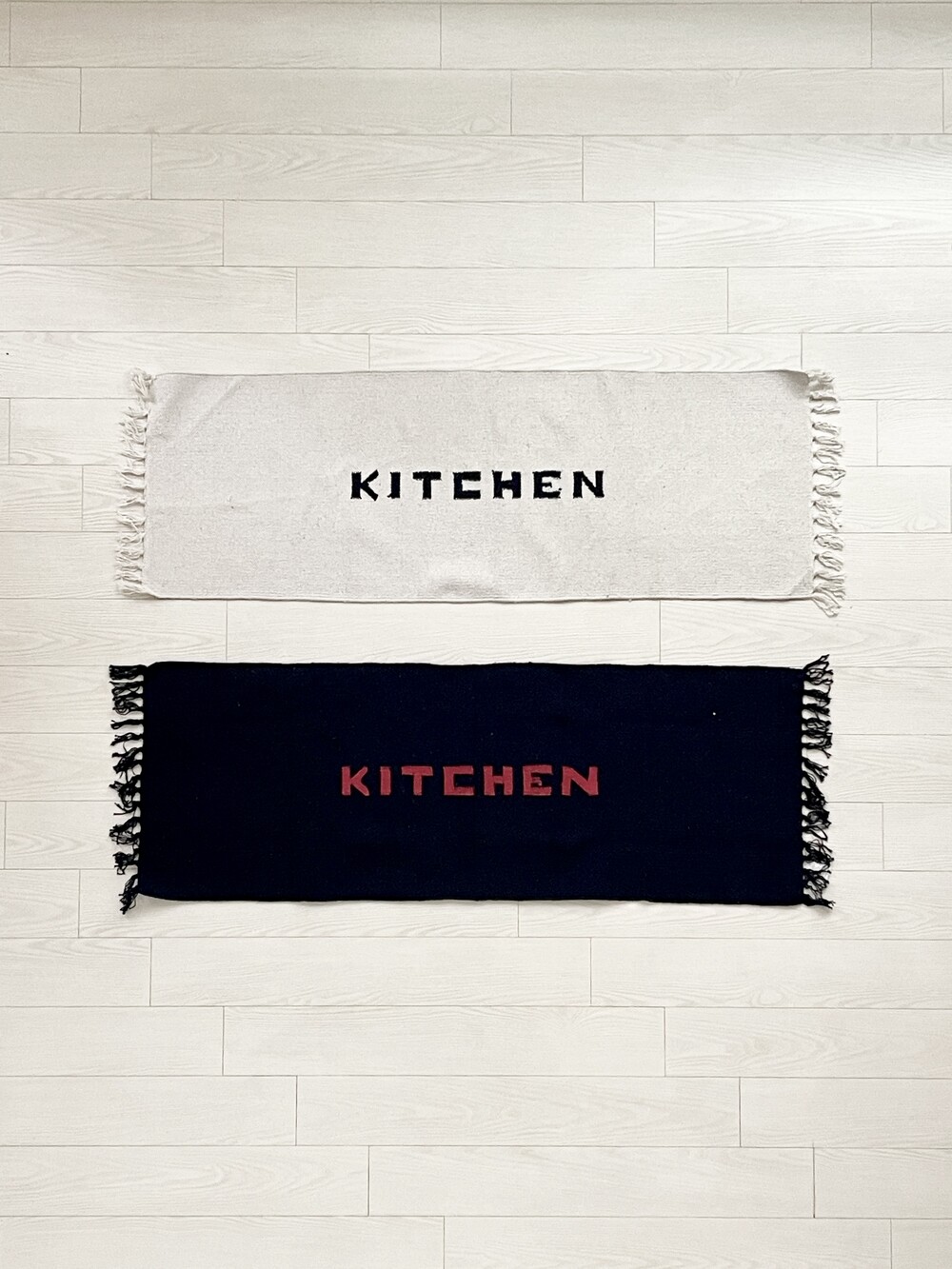일본 라이프스타일 브랜드 Puebco 푸에브코의 Kitchen Floor Mat 키친 플로어 매트를 화이트와 네이비 두 가지 컬러로 소개합니다. 재활용 소재를 사용하여 100% 핸드메이드로 직조된 키친 플로어 매트는 매력적인 컬러 배색과 양옆의 프린지 디테일이 포인트가 되는 아이템입니다. 심플한 디자인과 빈티지 감성이 어우러진 제품으로 주방에 센스있는 스타일링을 연출할 수 있습니다.