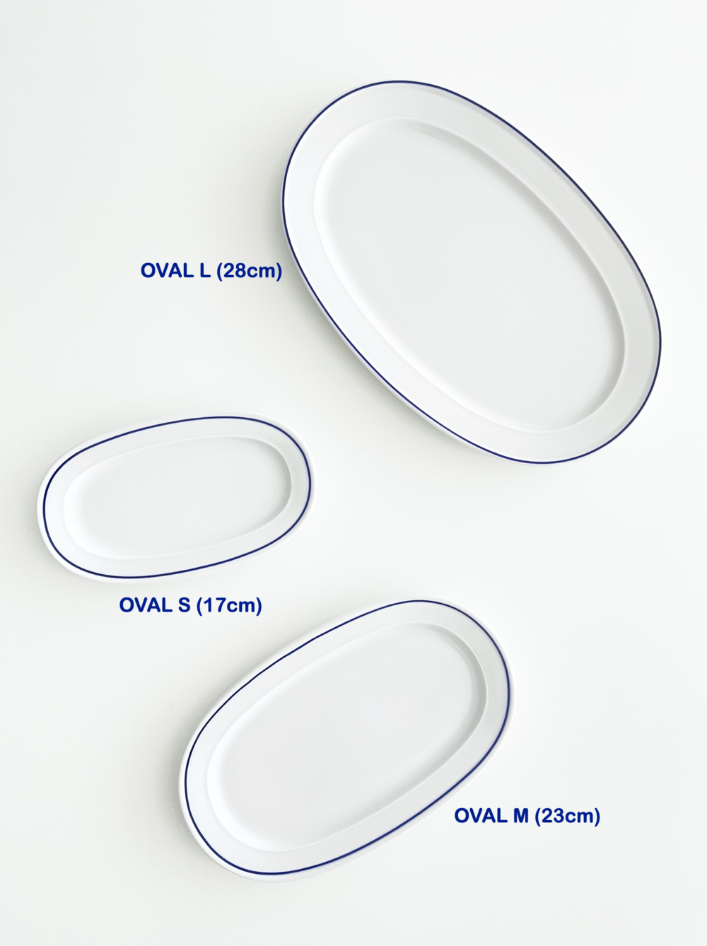※ 라운드와 오발 플레이트의 블루림 라인 두께가 다르게 생산되었습니다. 오발의 림라인 두께가 라운드 보다 얇아요.