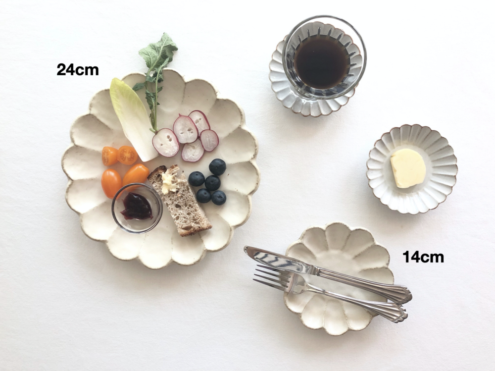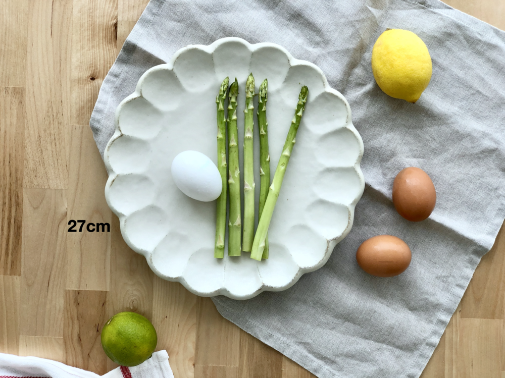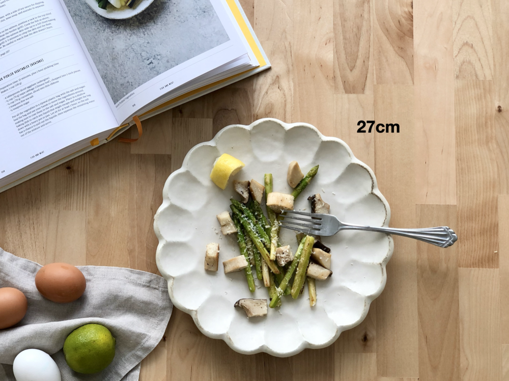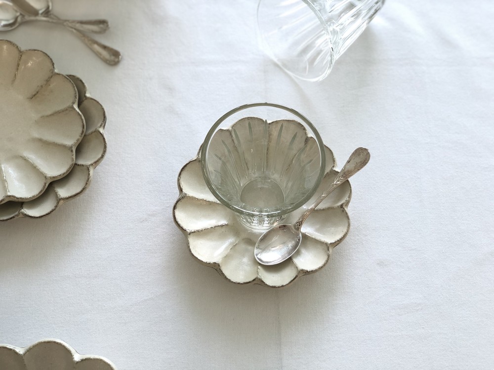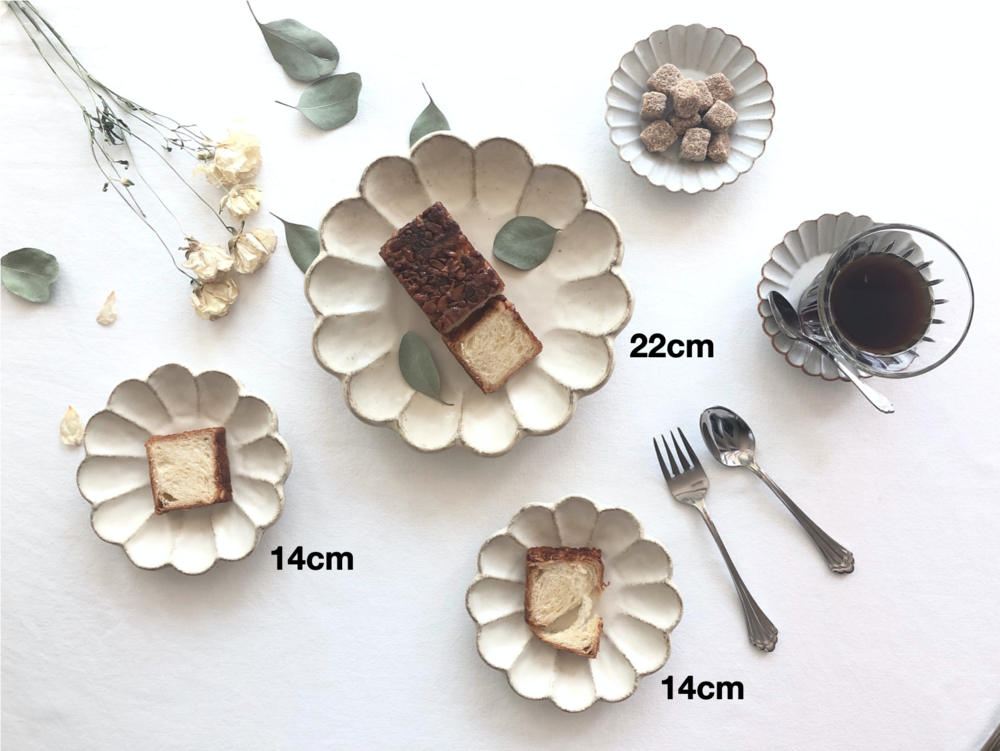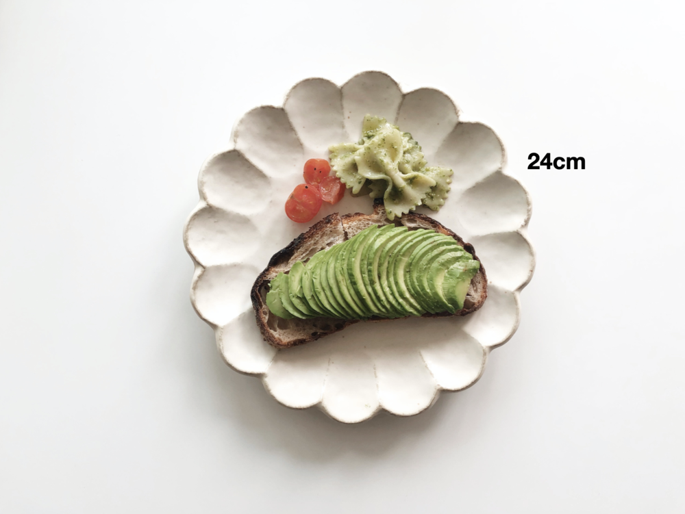 백토로 구현해낸 따뜻하고 부드러운 컬러톤과 내추럴하고 빈티지한 외관이 아름다운 제품입니다. 음식을 담으면 페탈 디자인이 도드라지면서 마치 음식을 가운데 두고 꽃이 핀 듯한 기분 좋은 착각을 하게 만들지요. 음식을 담았을 때 더 매력적인 제품이에요.