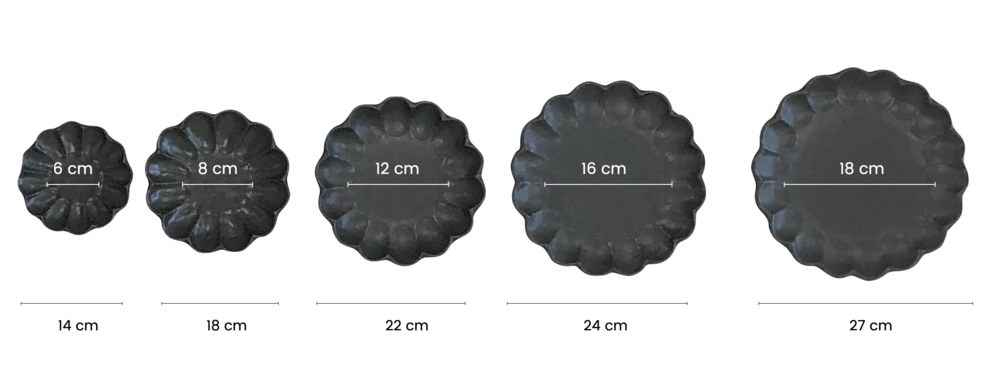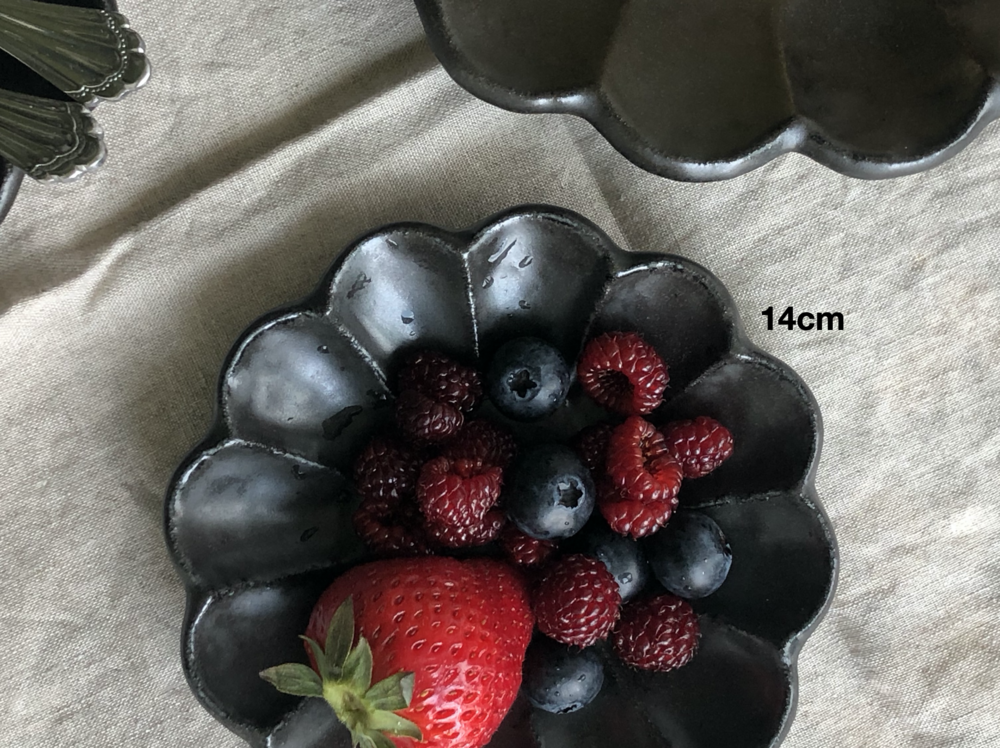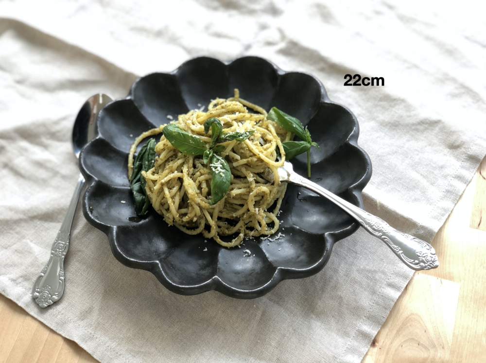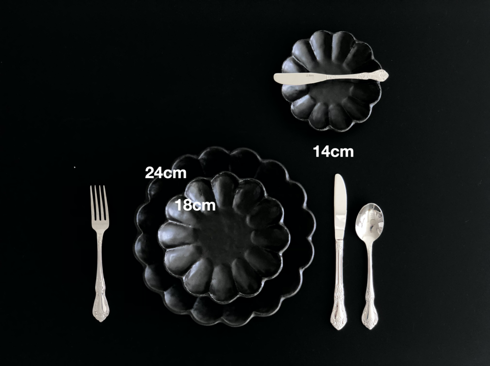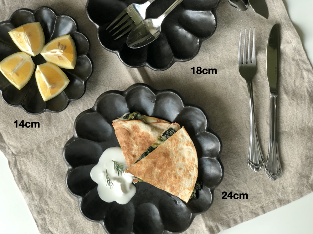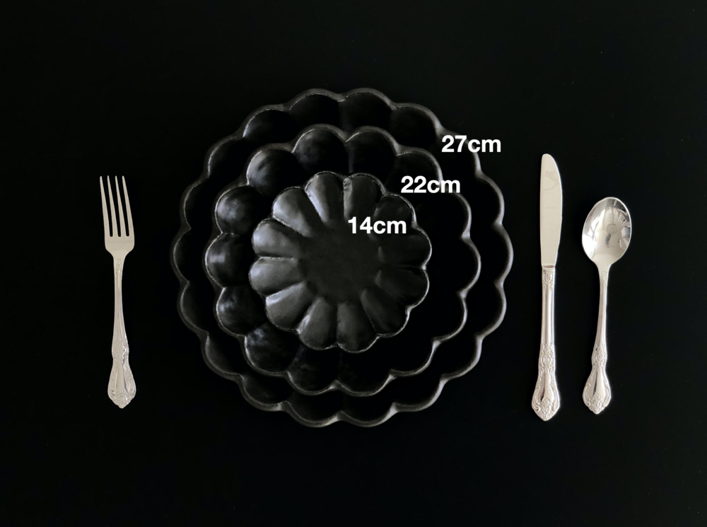 최고급 소재의 흑유로 빚어져 블랙컬러이지만 부드러운 느낌을 자아내며, 내추럴하고 빈티지한 외관이 아름다운 제품입니다. 음식을 담으면 페탈 디자인과 함께 음식 컬러가 더욱 도드라져보여, 마치 음식을 가운데 두고 꽃이 핀 듯한 기분 좋은 착각을 하게 만들지요. 음식을 담았을 때 더욱 매력적인 제품이에요.