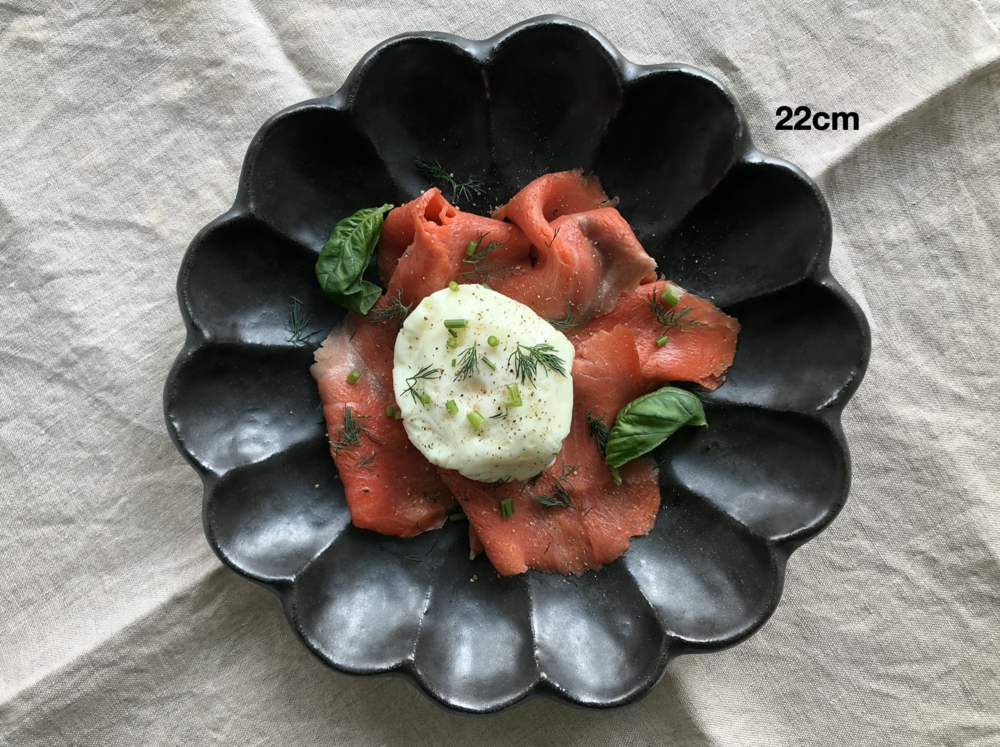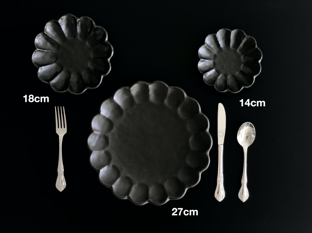 Kohyo 코효의 대표적인 Rinka Collection Black Line 링카 컬렉션 블랙라인을 소개합니다. 페탈 디자인이 매력적인 링카 제품은 흑유를 원료로 1,300ºC에서 소성을 거친 자기 제품이지만 특별한 유약 처리를 통해 도기의 내추럴하고 빈티지한 느낌을 살린 것이 특징입니다. 내구성이 강하고 가벼운 자기의 특성을 가지면서도 흙의 터치를 느낄 수 있는 자연스러운 도기의 아름다움을 가진 특별한 도자기이지요. 스몰앤그랜드에서 다섯 가지 사이즈의 플레이트로 지금 만나보실 수 있습니다.