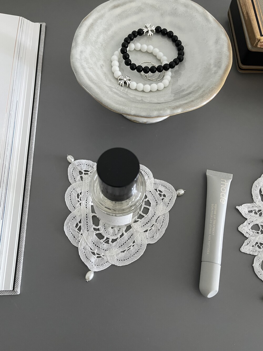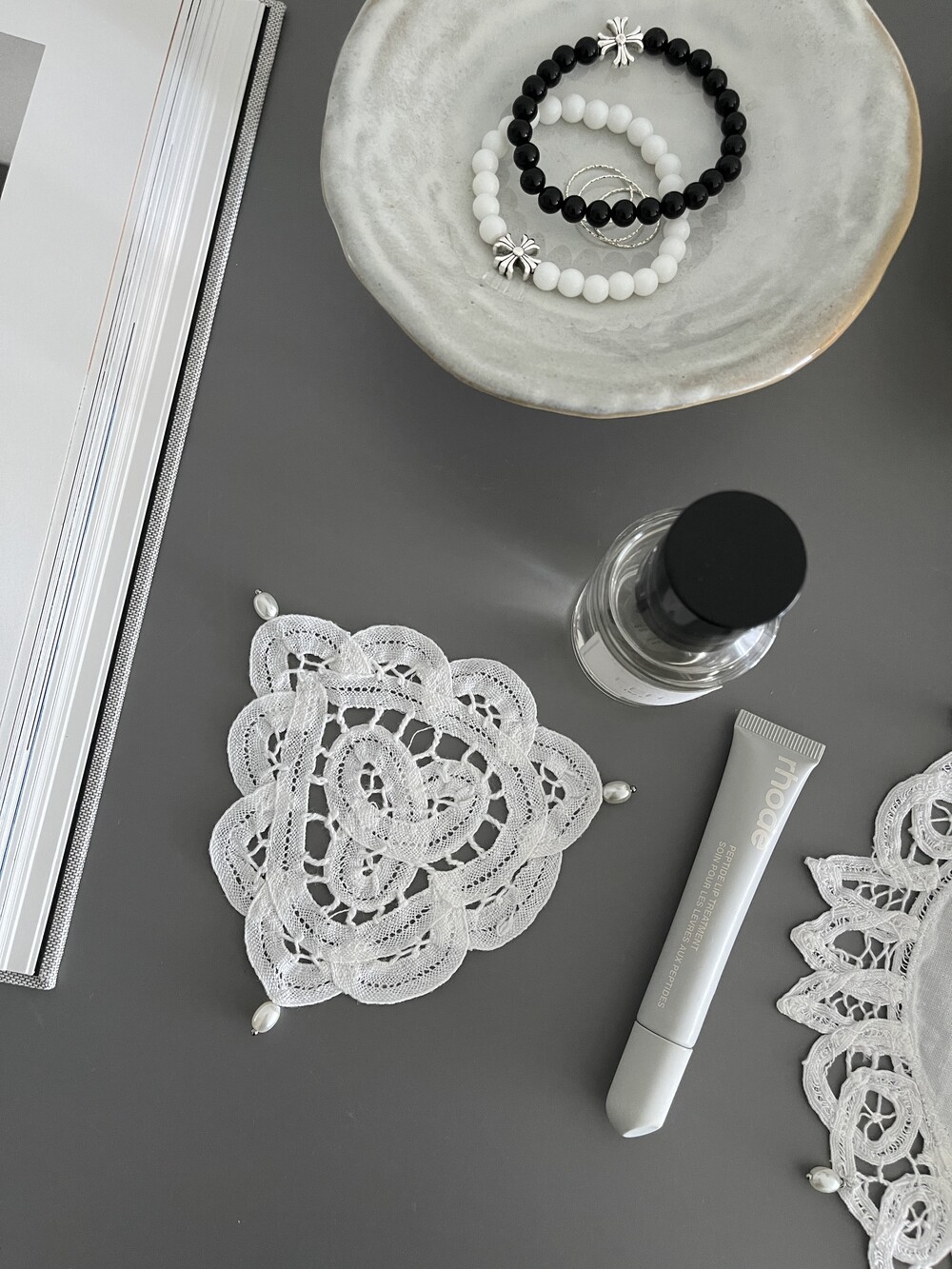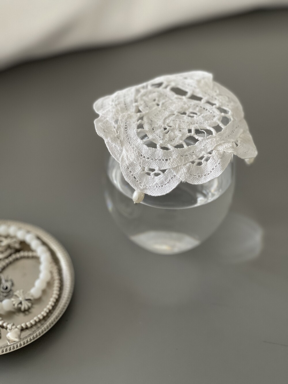 스몰앤그랜드가 자체제작한 Pearl Coaster Collection 펄 코스터 컬렉션을 소개합니다. Pearl Coaster Small 펄 코스터 스몰사이즈는 삼각형 모양으로 섬세하게 연결된 레이스에 핸드메이드로 세밀하게 펄참을 달아 고급스럽게 완성된 제품입니다. 티타임, 와인파티, 칵테일파티 등 특별한 게스트 접대에서 감각적인 테이블을 만들어줍니다. 컵받침 외에도 쥬얼리 또는 소품 받침 등의 인테리어 아이템으로도 다양하게 활용 가능합니다.