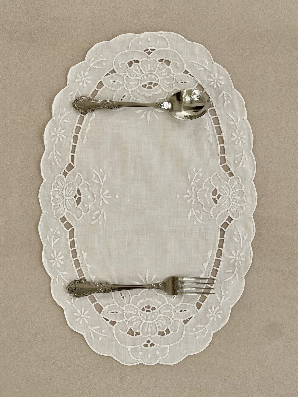 앤틱 스타일의 Lace Table Cloth Mat 레이스 테이블 클로스 매트를 소개합니다. 테이블 매트 용도 이외에도 소품 받침 등의 인테리어 아이템으로도 다양하게 활용 가능합니다.