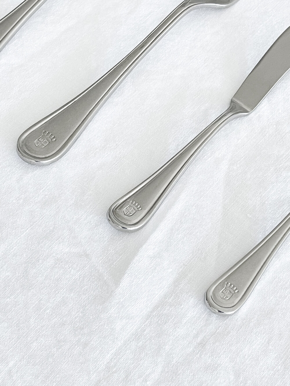 레트로 감성의 테이블웨어 브랜드 Studio M 스튜디오 엠의 클래식하면서도 빈티지한 느낌이 돋보이는 Charpente Cutlery Dinner Set 샤르빵데 커틀러리 디너 세트를 소개해드립니다. 핸들부분에 각인된 클래식 로고 엠블럼의 섬세함과 손으로 하나하나 마무리 공정 작업을 진행해 고급스러움을 더하고 적당한 중량감과 두께감은 우수한 그립감을 선사합니다. 중성적인 디자인으로 여느 테이블웨어와도 잘 어우러져 우아한 테이틀 세팅을 완성할 수 있습니다.