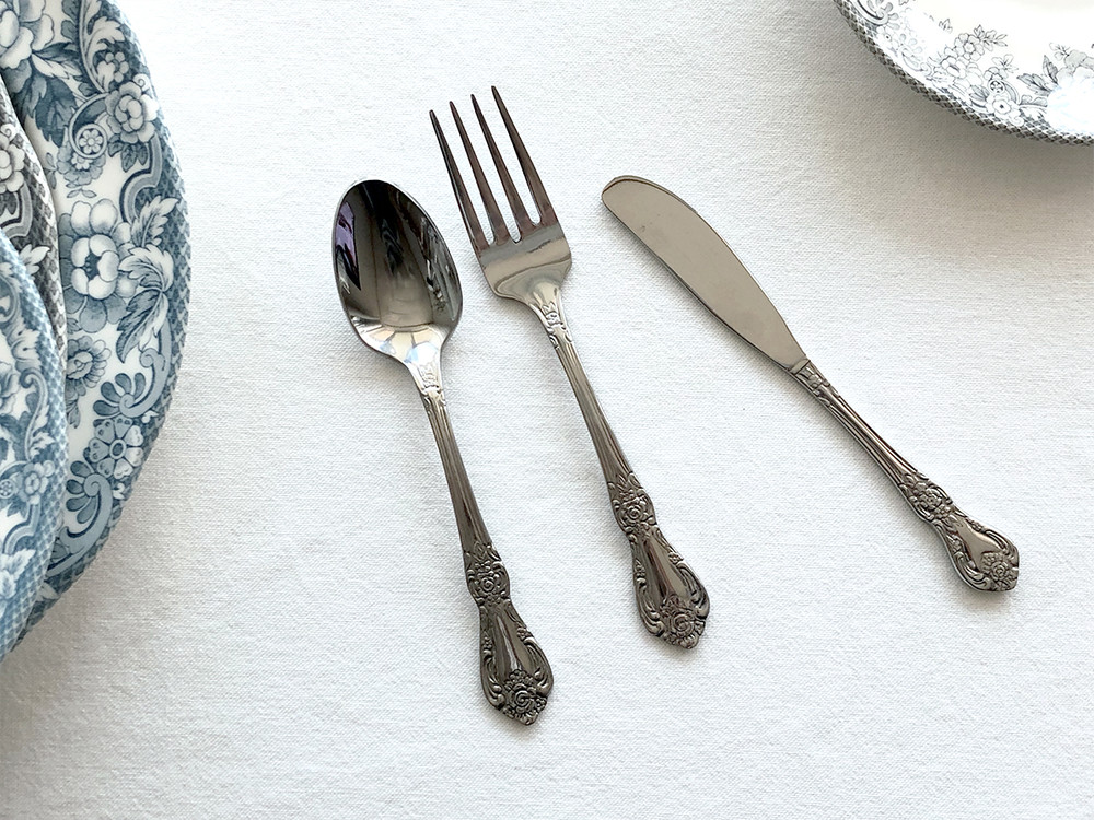 스위스 150년 이상 전통의 전문 커트러리 브랜드의 Grace Cutlery Dessert Set그레이스 커트러리 디저트 세트를 소개합니다. 꽃무늬가 정교하게 새겨진 손잡이 부분이가 매력적인 그레이스 커트러리는 국제 품질 규격에서 인정 받는 하이엔드 스테인리스 스틸 18/10 (크롬 18%, 니켈 10%로 조성) 소재를 사용하여 오랜 시간 녹이 슬지 않고 위생적으로 사용 가능합니다.