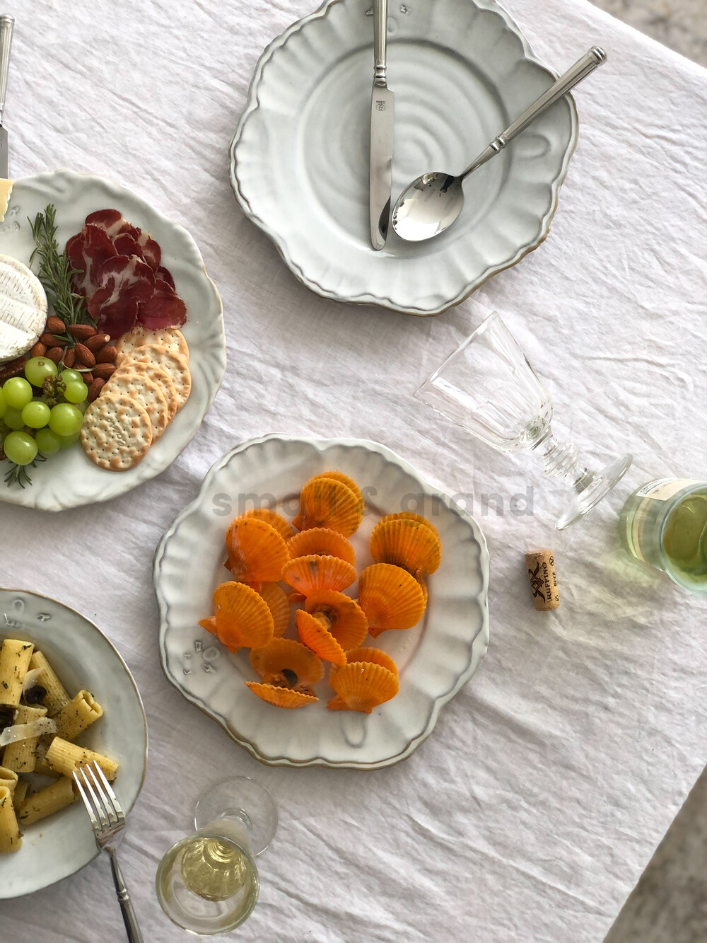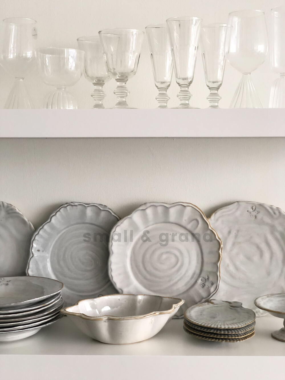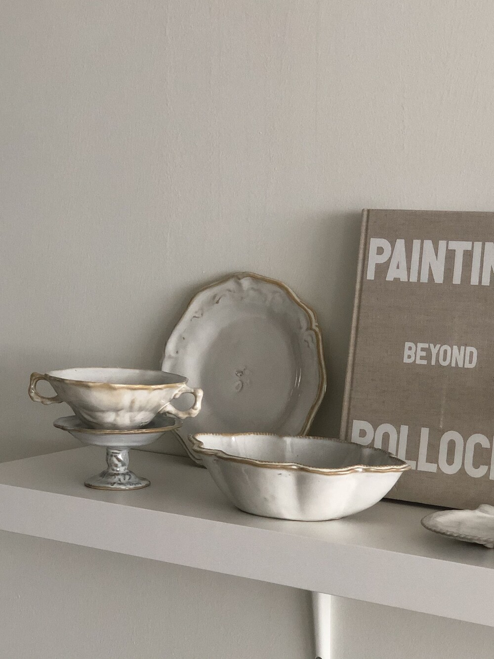 Yarnnakarn 야나칸의 가장 대표적인 컬렉션인 Still Life Collection 스틸라이프 컬렉션 중 Star Dinner Plate 스타 디너 플레이트는 다양한 메뉴를 담아내기에 넉넉한 사이즈(26cm)로 디저트, 브런치, 디너 등 폭넓은 테이블세팅에 쓰임새가 많은 아이템입니다. 한눈에 시선을 끄는 장식적인 림 디자인은 담아내는 음식 뿐만 아니라 전체 테이블세팅이 더 풍성해보이도록 하여 마치 고급 레스토랑과 같은 무드를 완성해줍니다. 정형화되지 않은 내추럴한 실루엣과 그릇 하나하나 마다 새겨진 각인은 심플한 디자인 속 섬세함이 깃든 야나칸 브랜드의 감성을 잘 표현해줍니다.