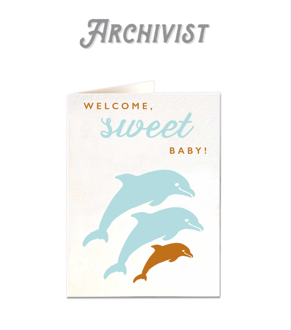 돌고래 그래픽이 눈에 띄는 아키비스트 카드로 아기의 탄생을 축하해주세요!