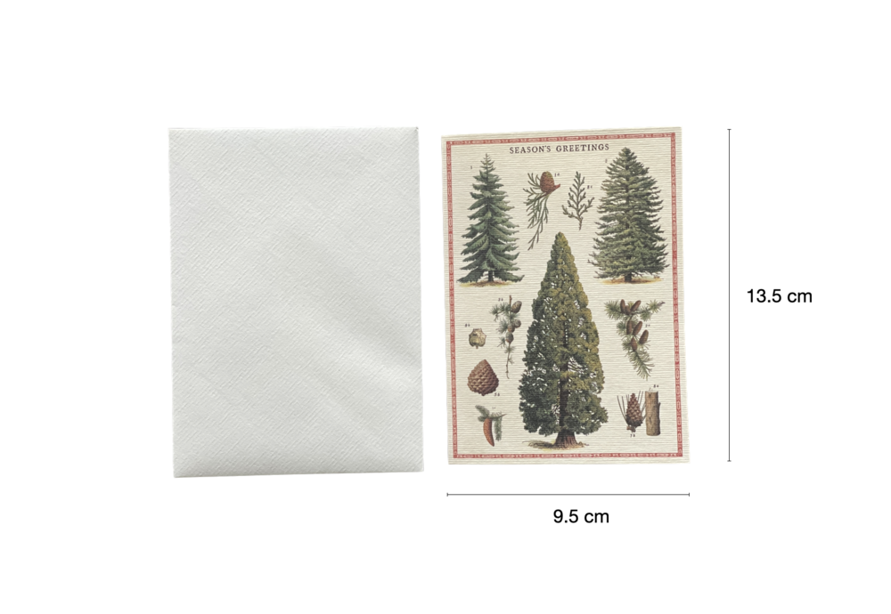빈티지 무드의 일러스트가 매력적인 미국 전문 스테이셔너리 브랜드에서 제작한 Christmas Tree Card 크리스마스 트리 카드를 선보입니다. 크지도 작지도 않은 적당한 사이즈로 크리스마스 선물과 함께 카드에 마음을 담아 선물을 준비해보세요.