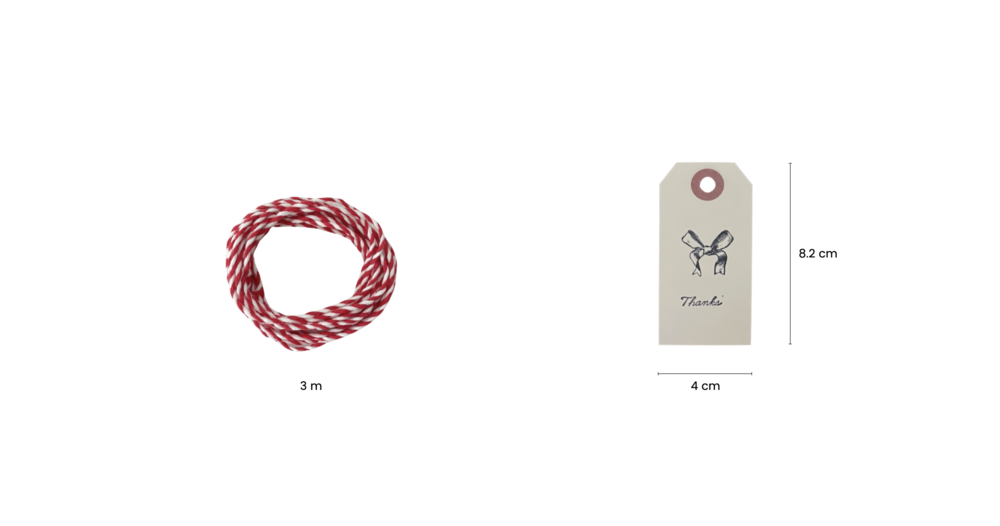 심플하지만 소중한 마음을 담아 전달할 수 있는 스몰앤그랜드의 시그니처 기프트 패키징의 포인트인 S&G Gift Tag 스그 기프트택을 소개드려요. 스몰앤그랜드가 론칭할때부터 사용하던 영국의 167년 전통 깊은 브랜드 Baker's Twine 베이커스 트와인의 레드끈 3m와 스탬프택으로 구성되었습니다. 스탬프택은 두가지 디자인의 HBD 각각 두장씩, 네 가지 디자인 중 랜덤하게 셀렉된 두 개의 Thanks 택이 각각 한장씩 총 6장 세트로 구성되었습니다. 작은 선물도 진심을 담아 스그 스타일처럼 센스있게 전달해보세요.